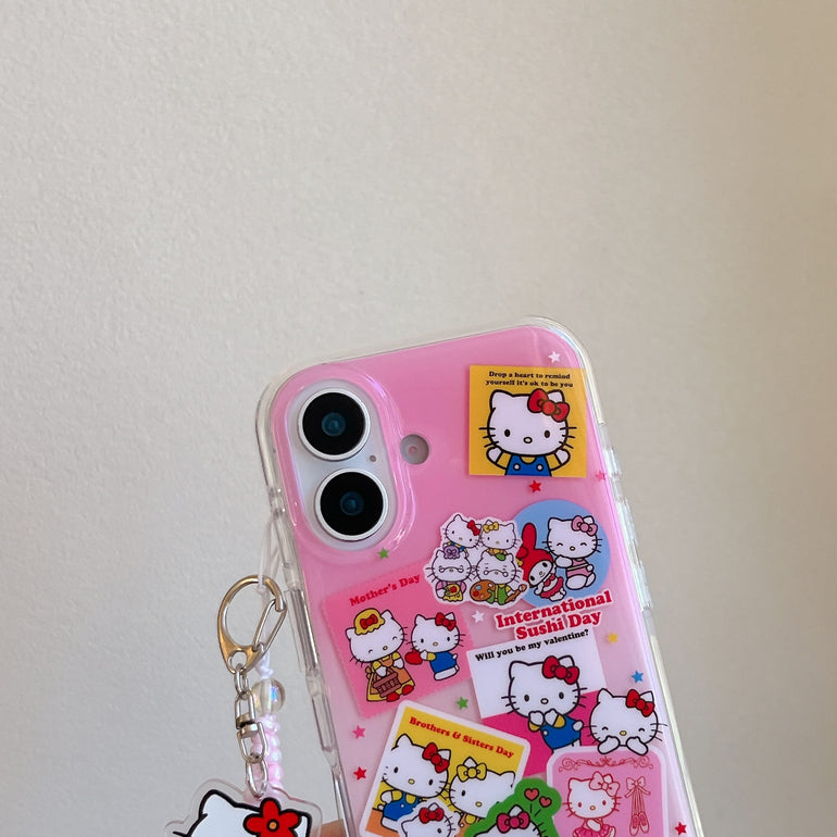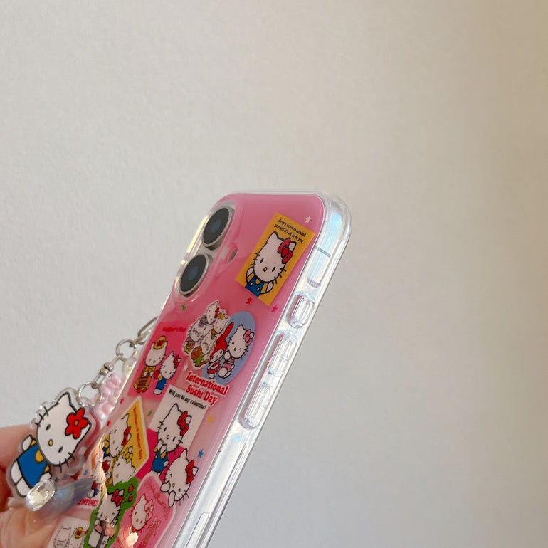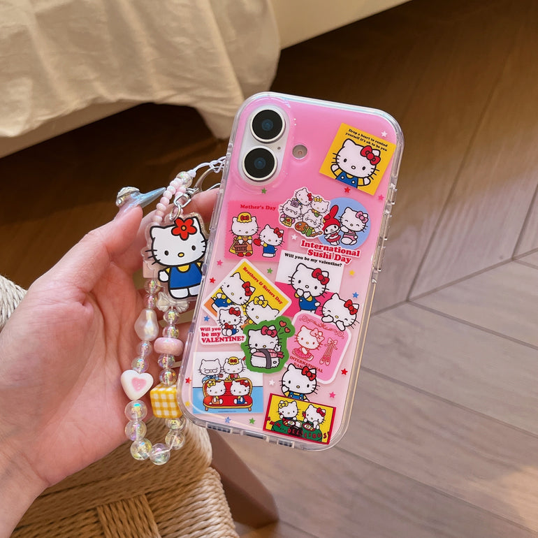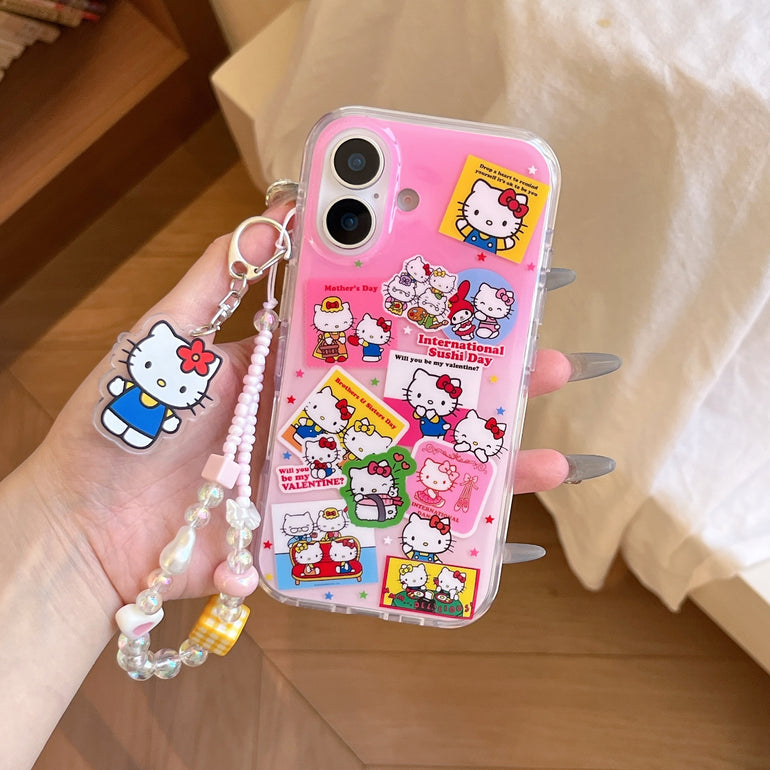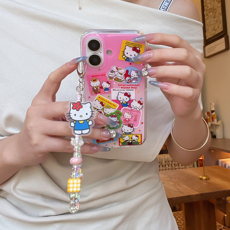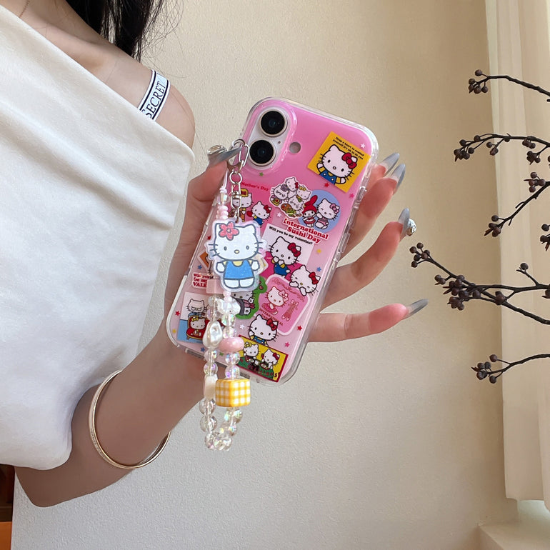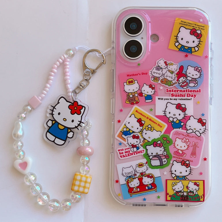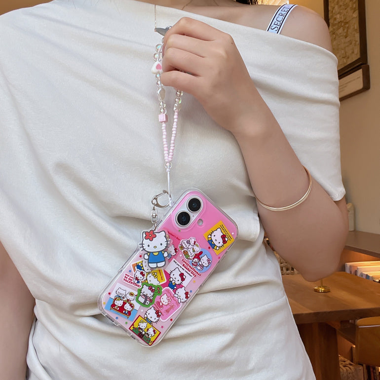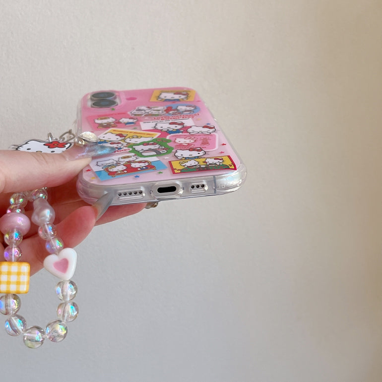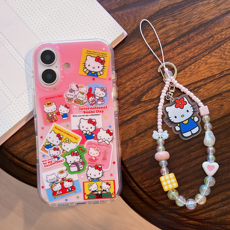 Cute Kitty Pink iPhone Case with Beaded Strap & Charm – Cute Cartoon Soft Cover for iPhone