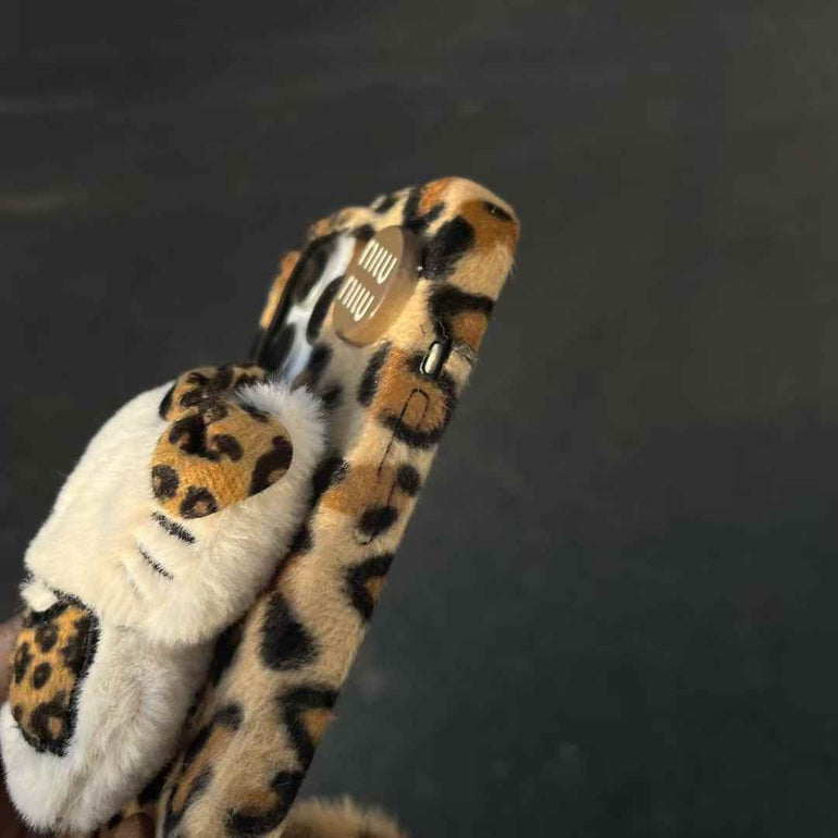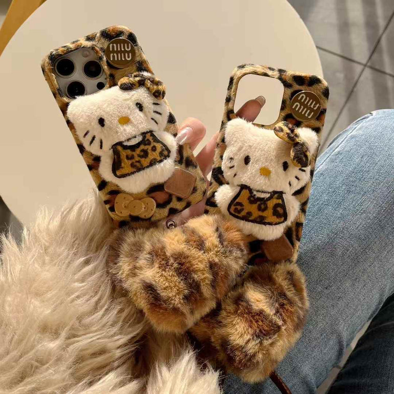 Cute Leopard Kitty Plush iPhone Case With Heart Charm