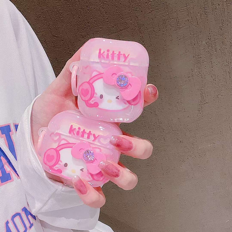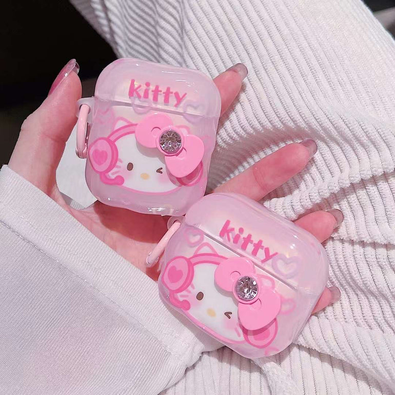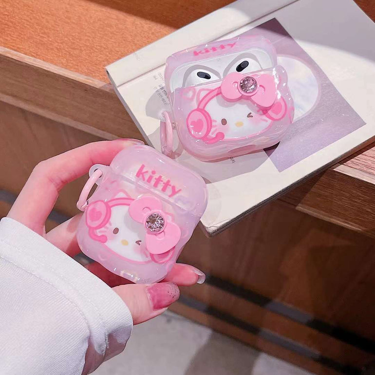 Cute Kitty With Bow Silicon Airpod Case
