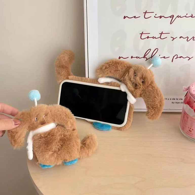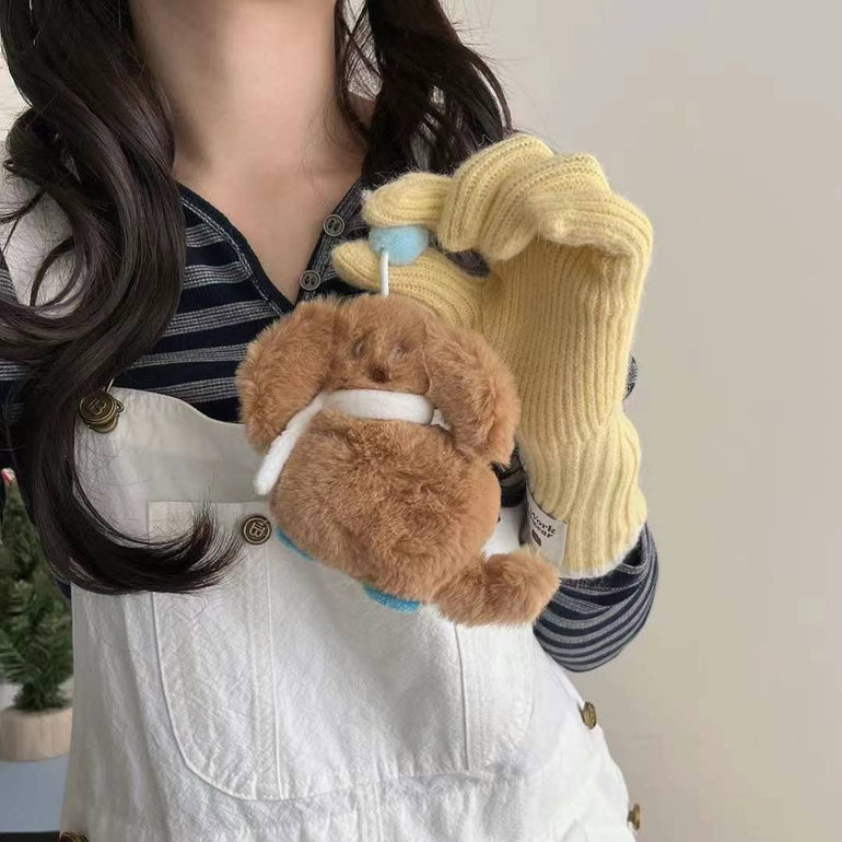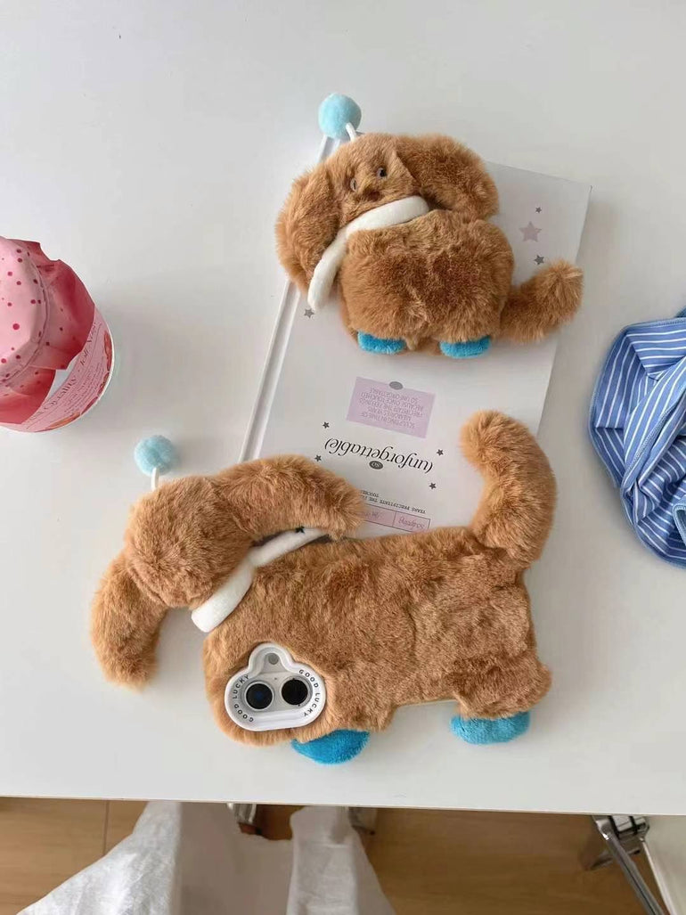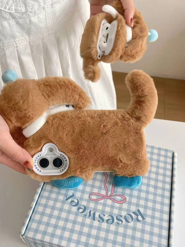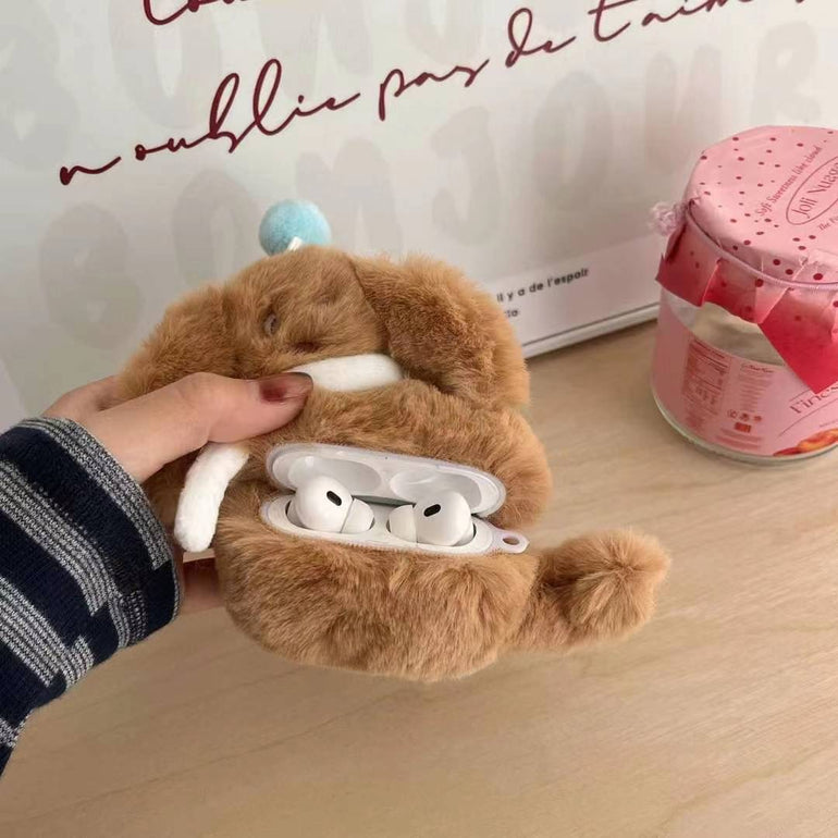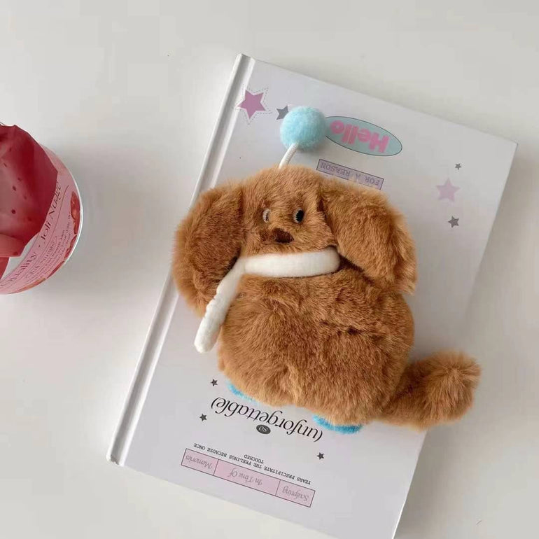 Cute Plush Brown Dog Style Airpod Case With Tail