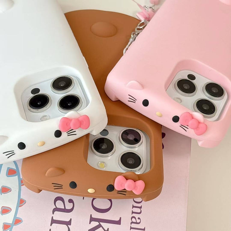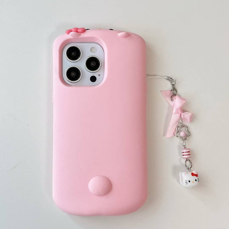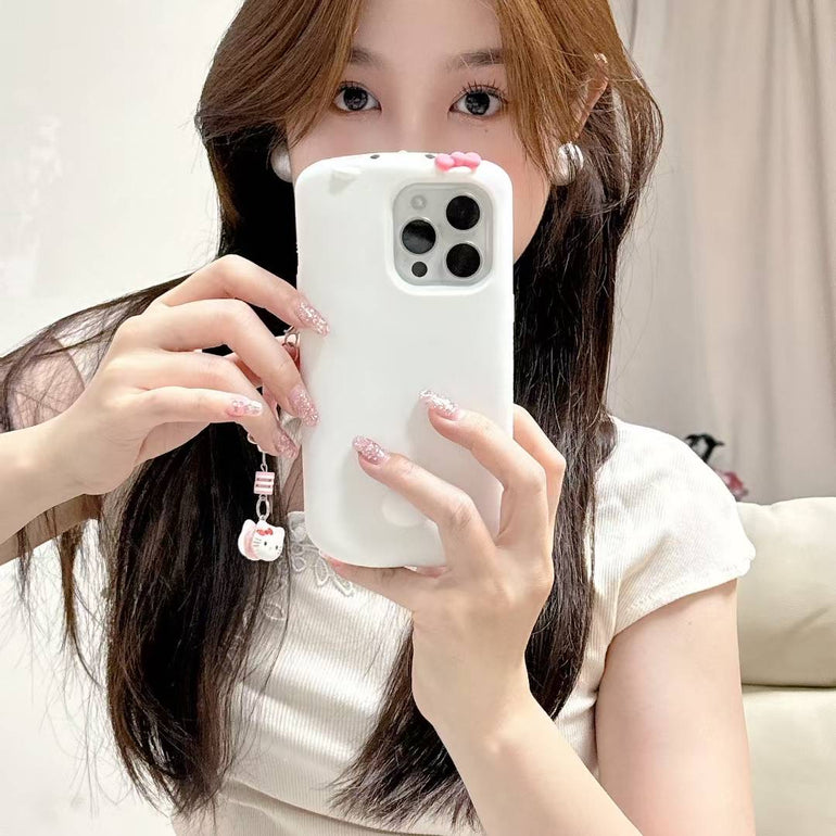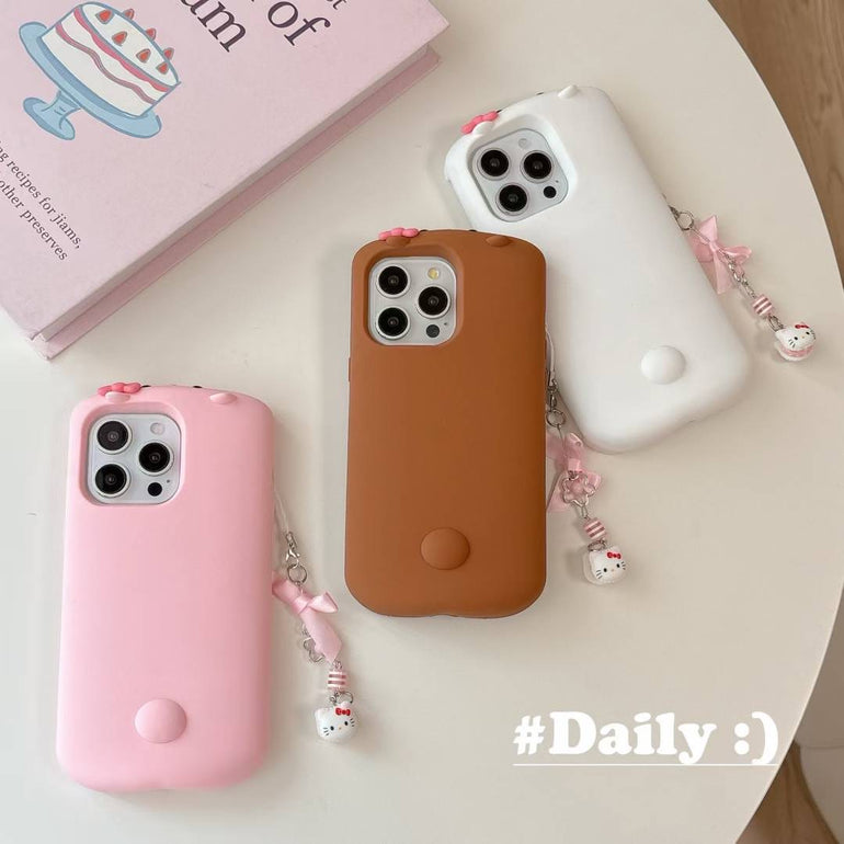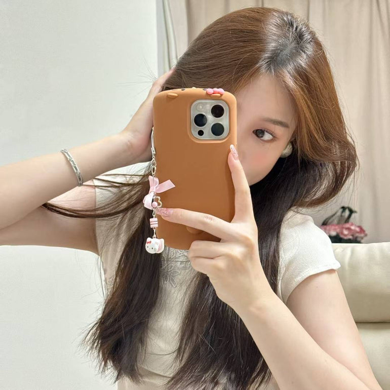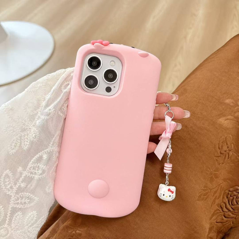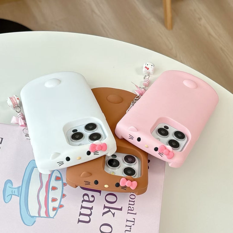 Cute Silicone iPhone Case with Kitty Charm – Soft Matte Finish with Bow Chain Accessory