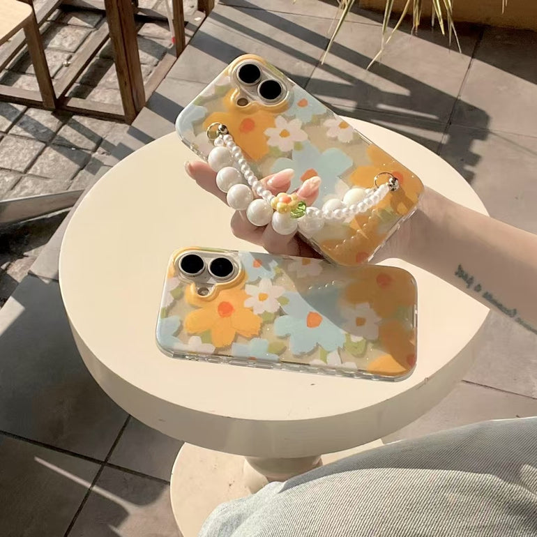 Daisy Pattern Silicon iPhone Case With Anti Fall Holder