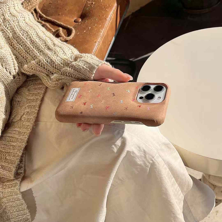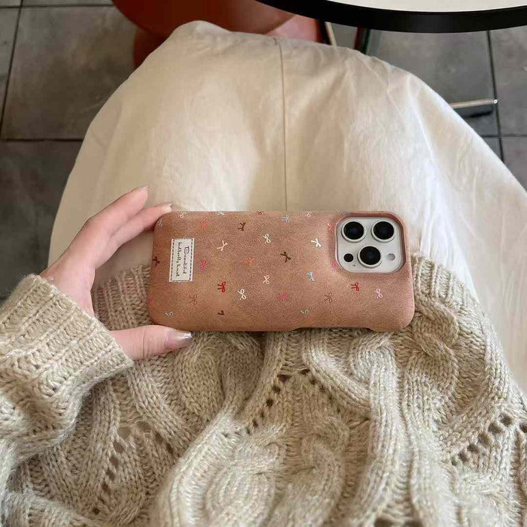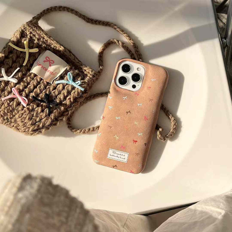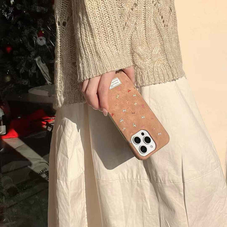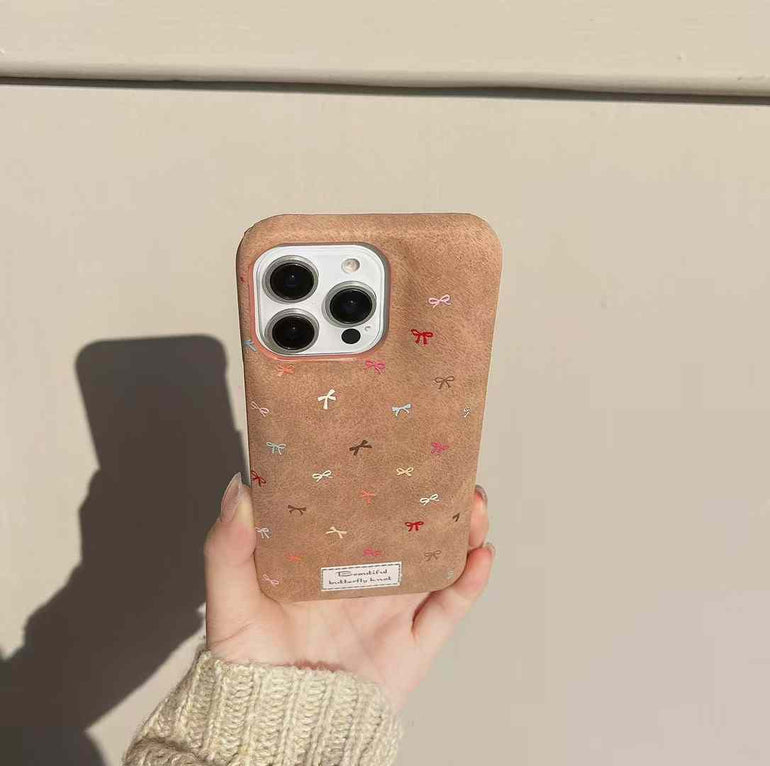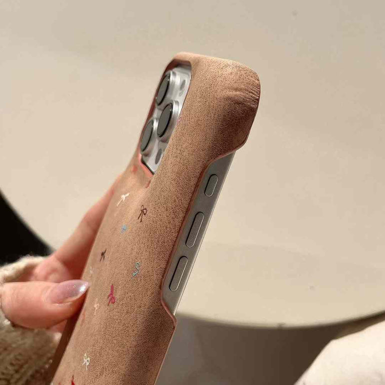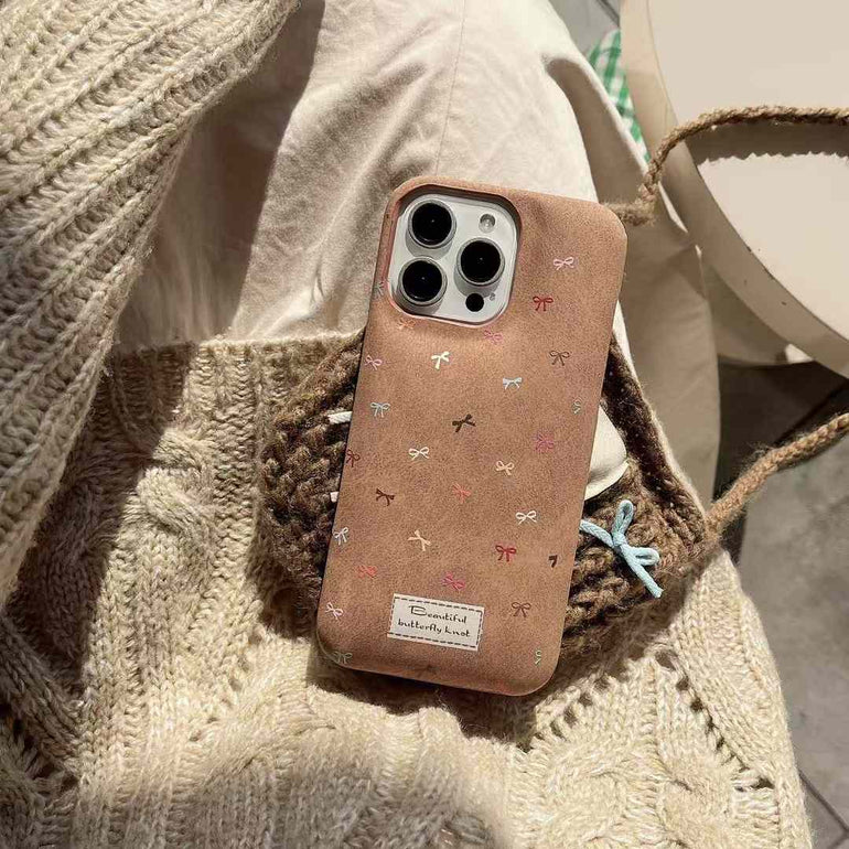 Colorful Bow Pattern Puffer Leather Case For iPhone