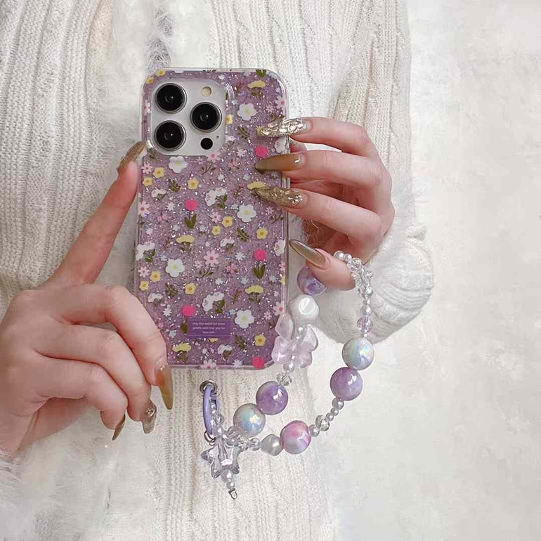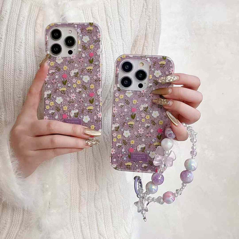 Floral Pattern Case For iPhone With Bow Charm