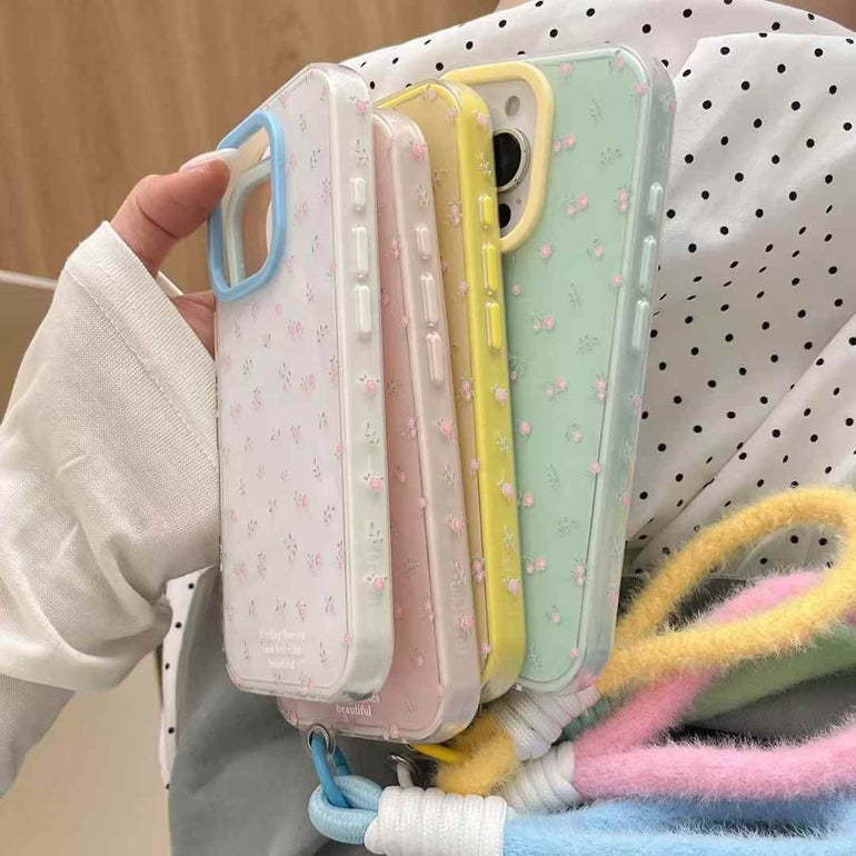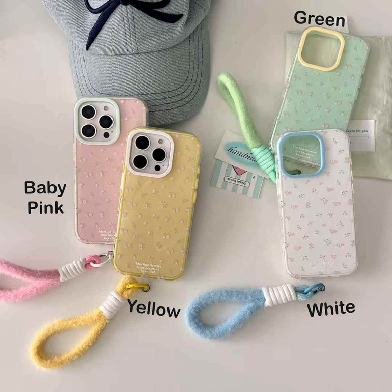 Floral Pattern Silicon Case For iPhone With Plush Rope Holder