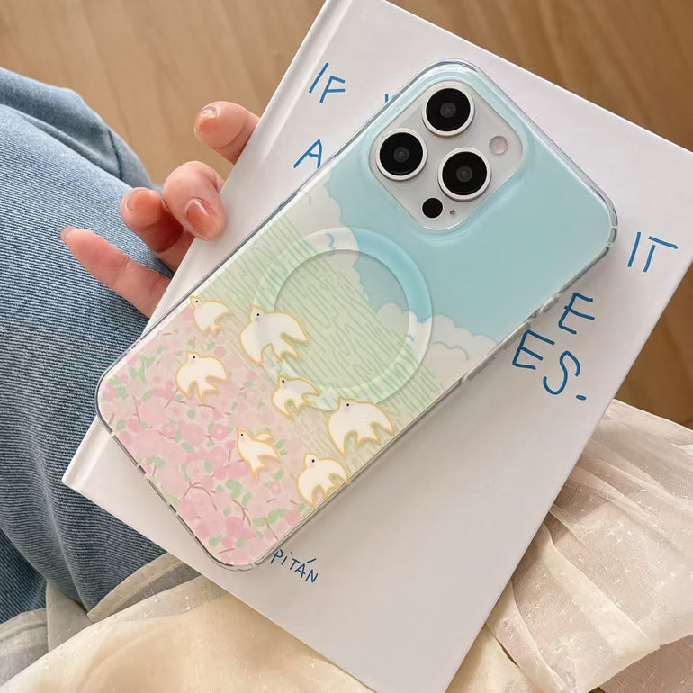 Flying Birds Silicon Magsafe iPhone Case With Sun Magsafe Holder