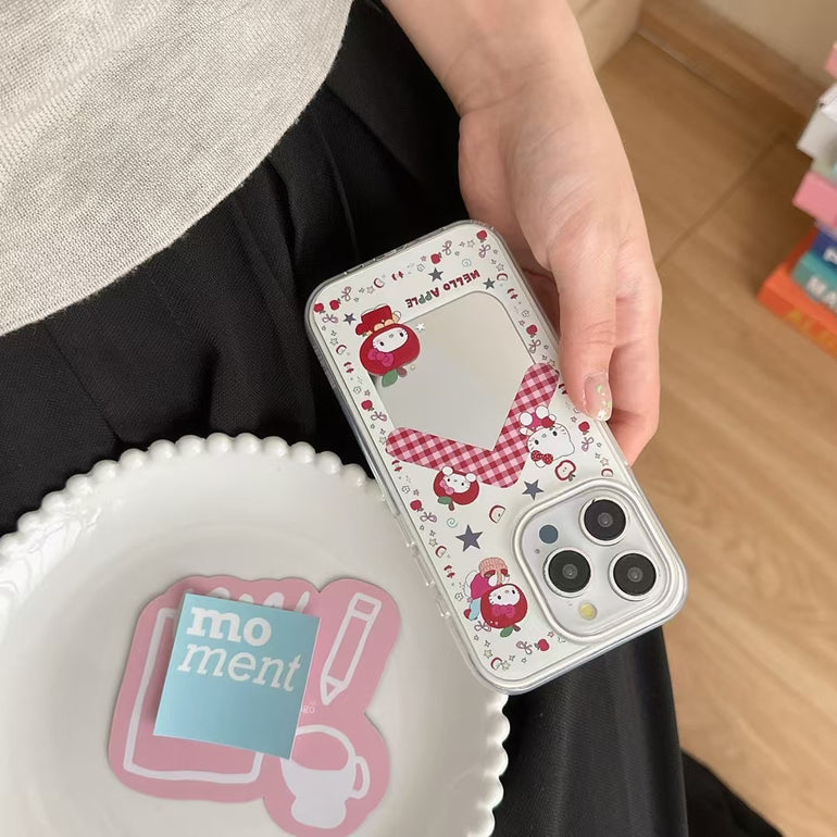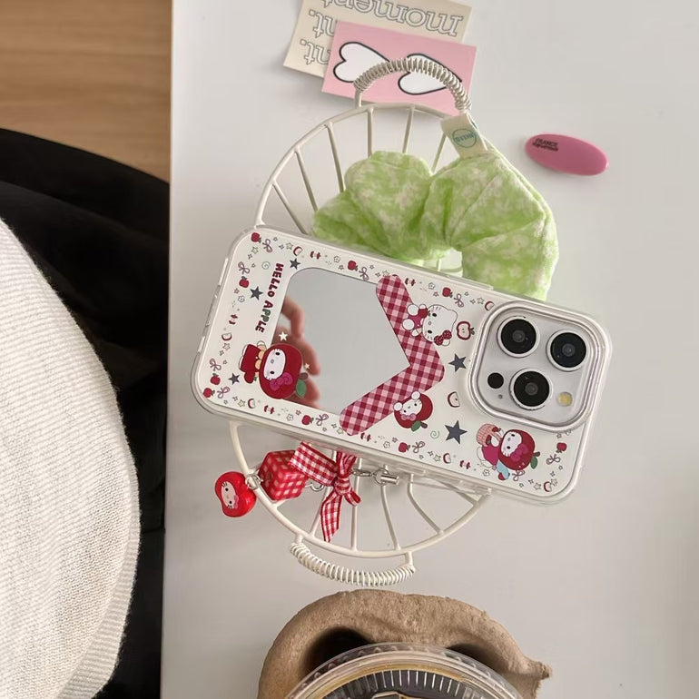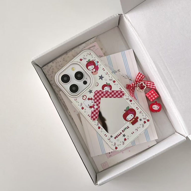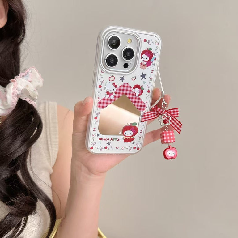 Happy Apple Mirror Designer Case For iPhone With Charm