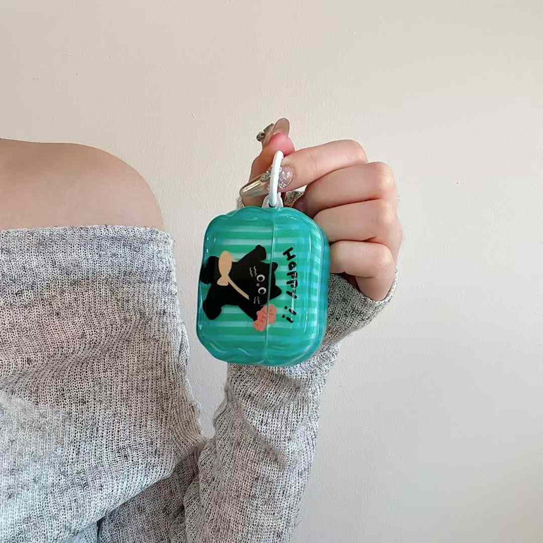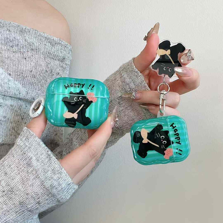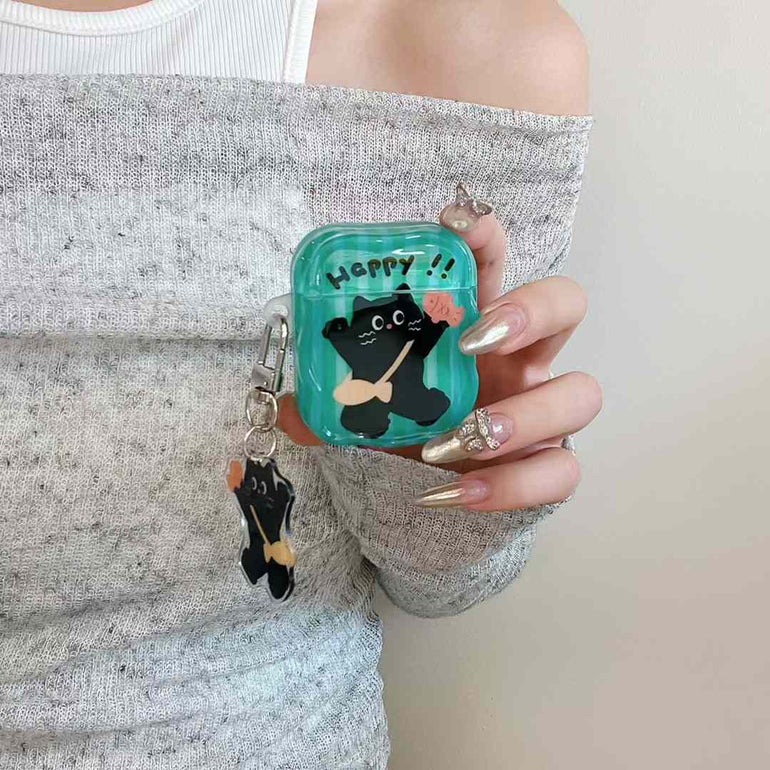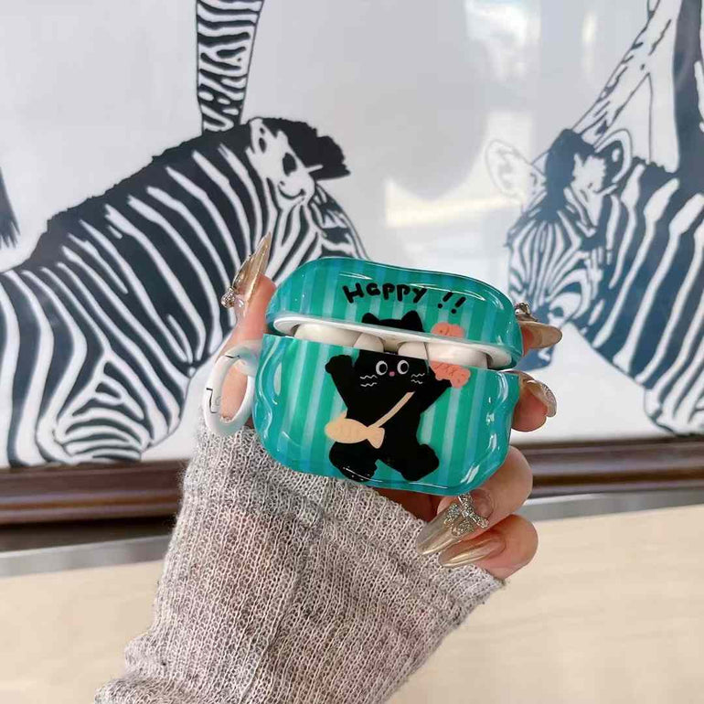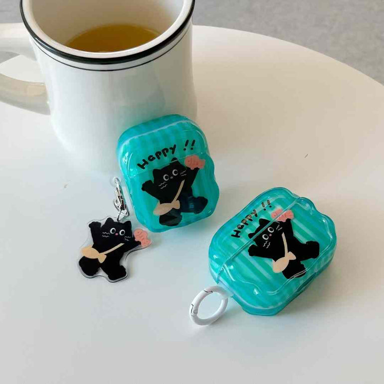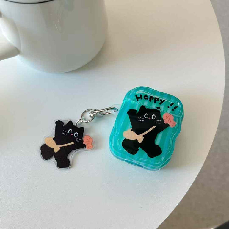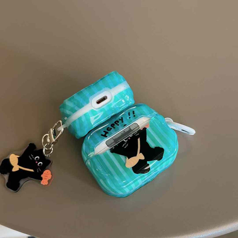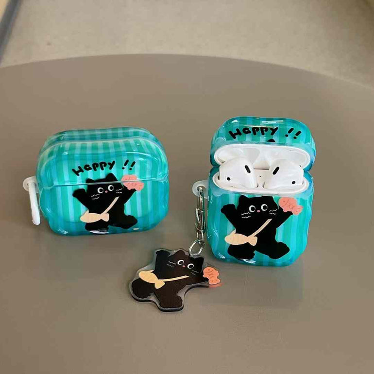 Happy Cat With Fish Silicon Airpod Case With Cat Charm