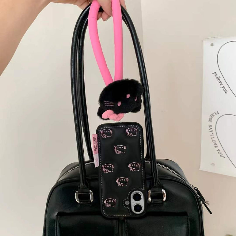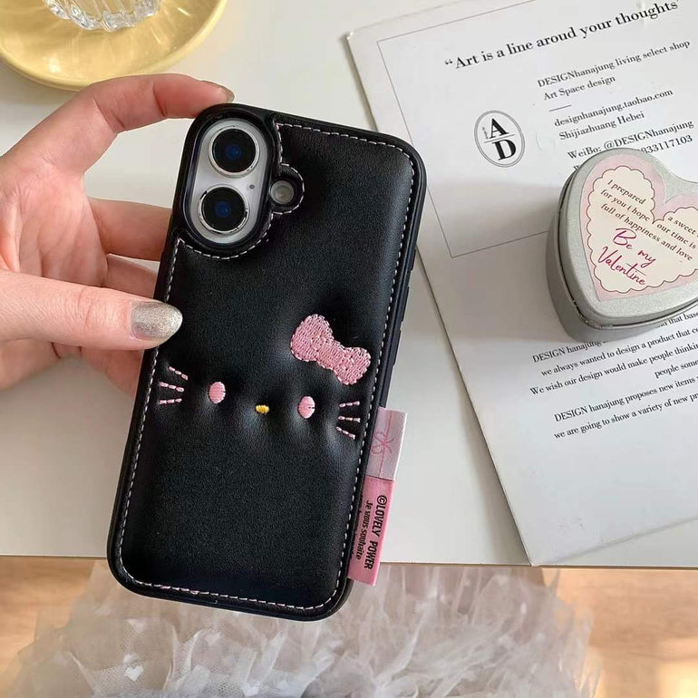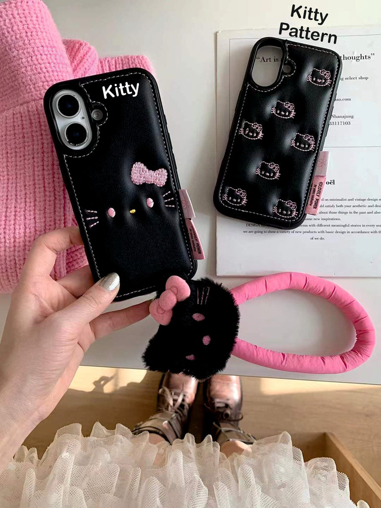 Kitty Leather Embossed Case For iPhone With Kitty String Holder