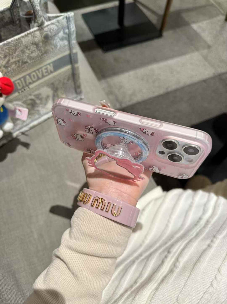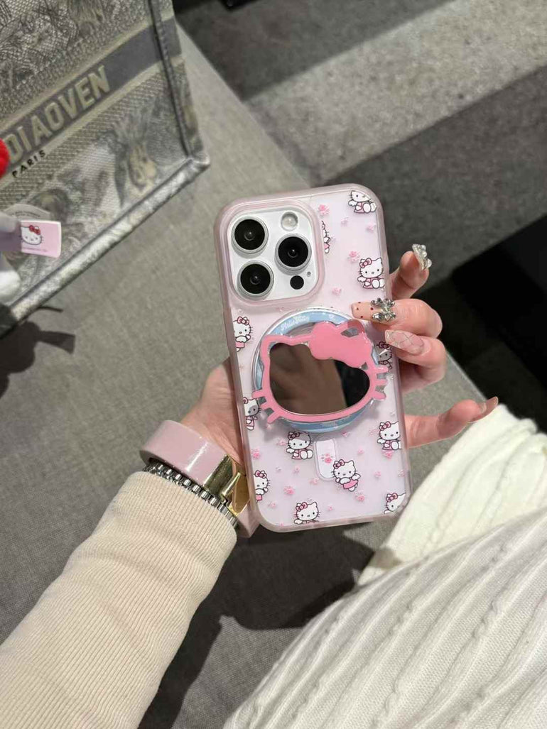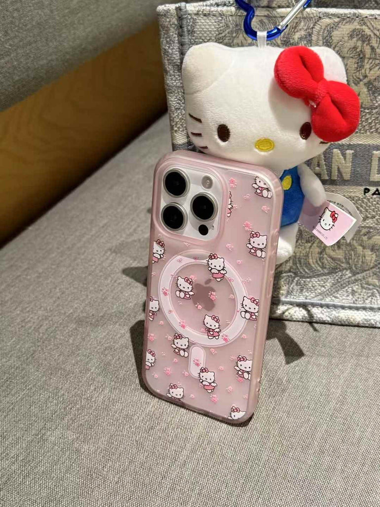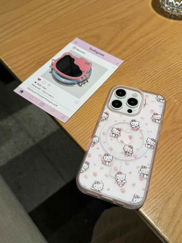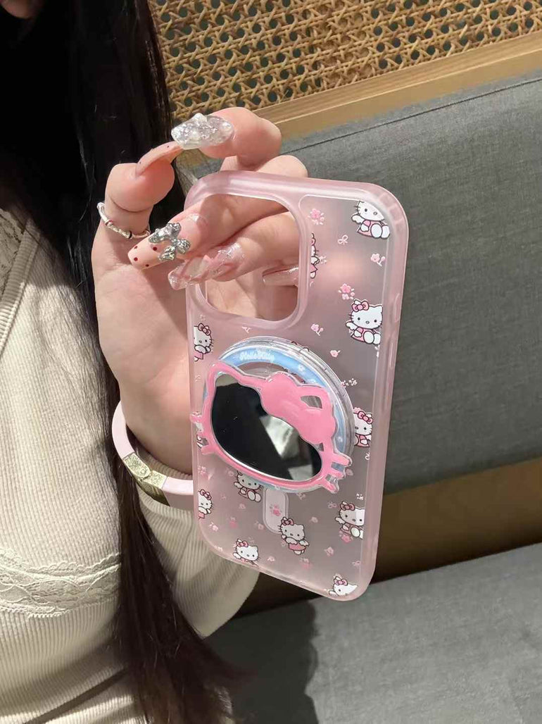 Kitty Pattern Silicon Case For iPhone With Kitty Magsafe Holder