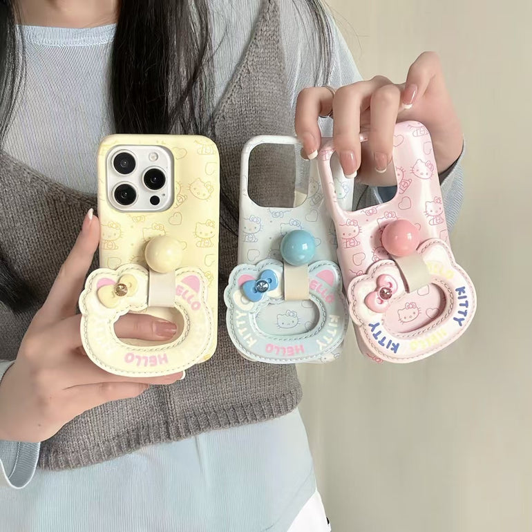 Kitty Pattern Silicon Puffer Case For iPhone With Kitty Holder