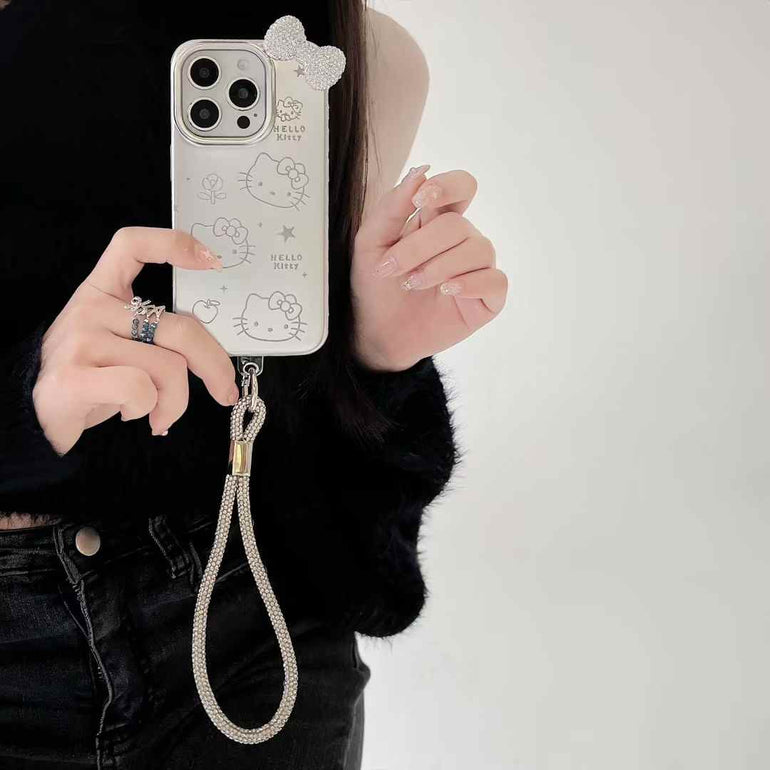 Kitty With Bow Silicon Case For iPhone With Rope Holder