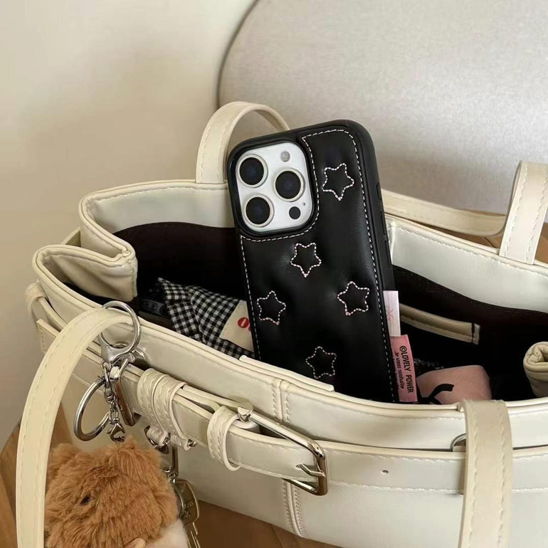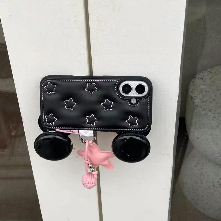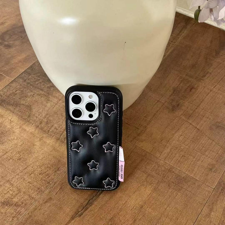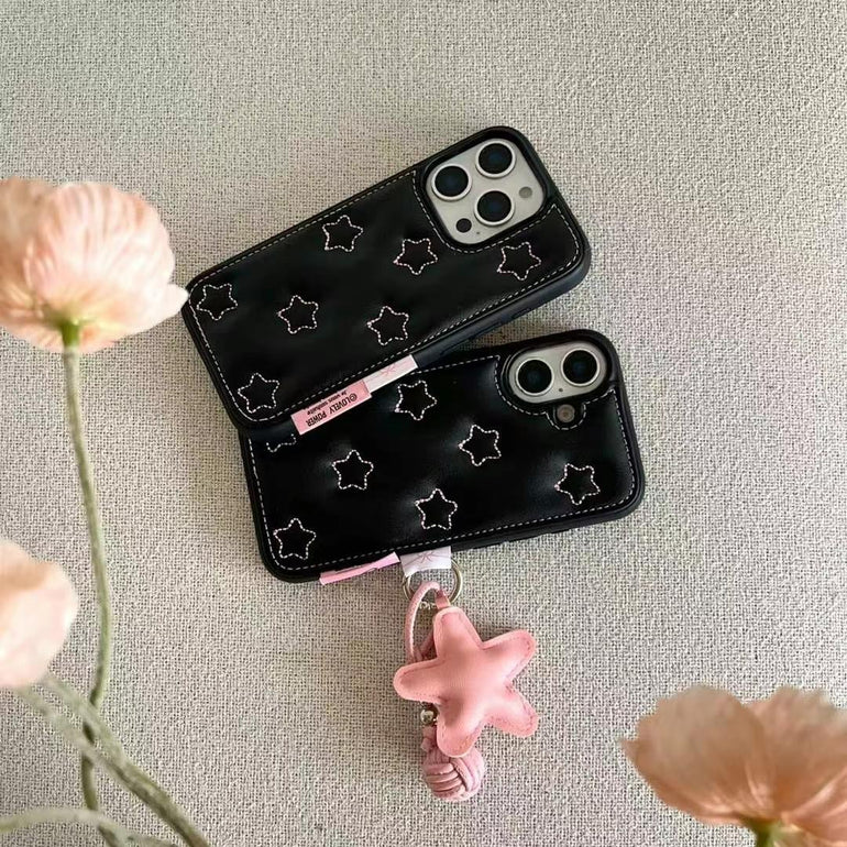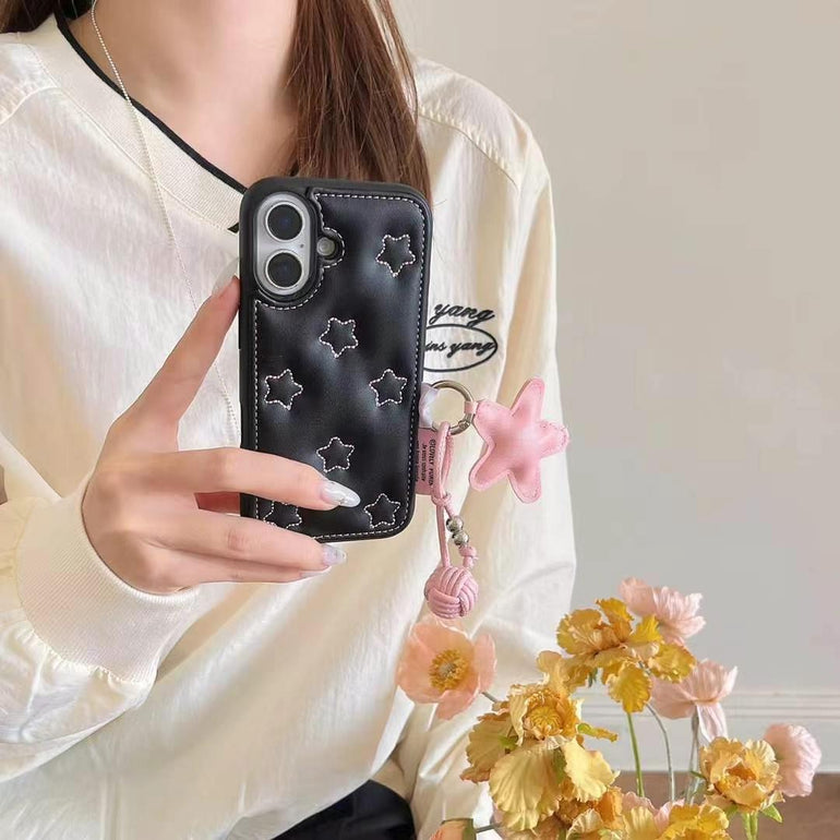 Leather Embossed Star Pattern Case For iPhone With Star Charm
