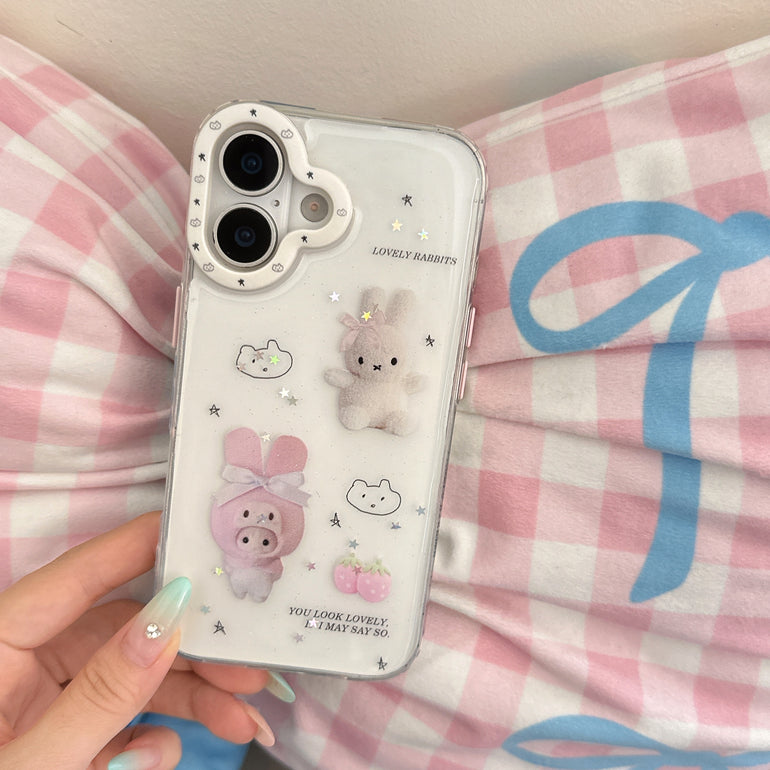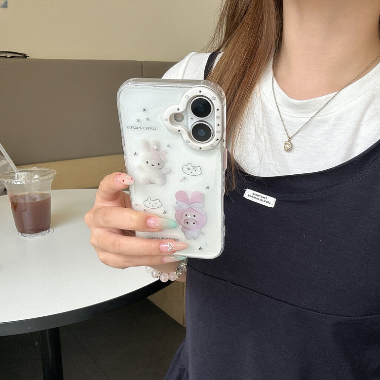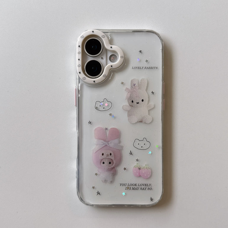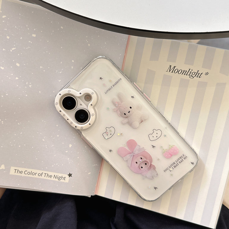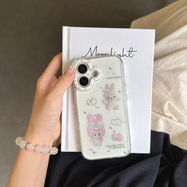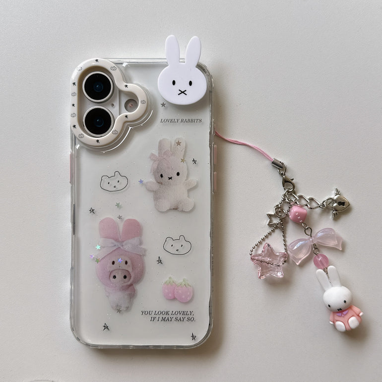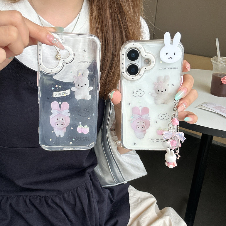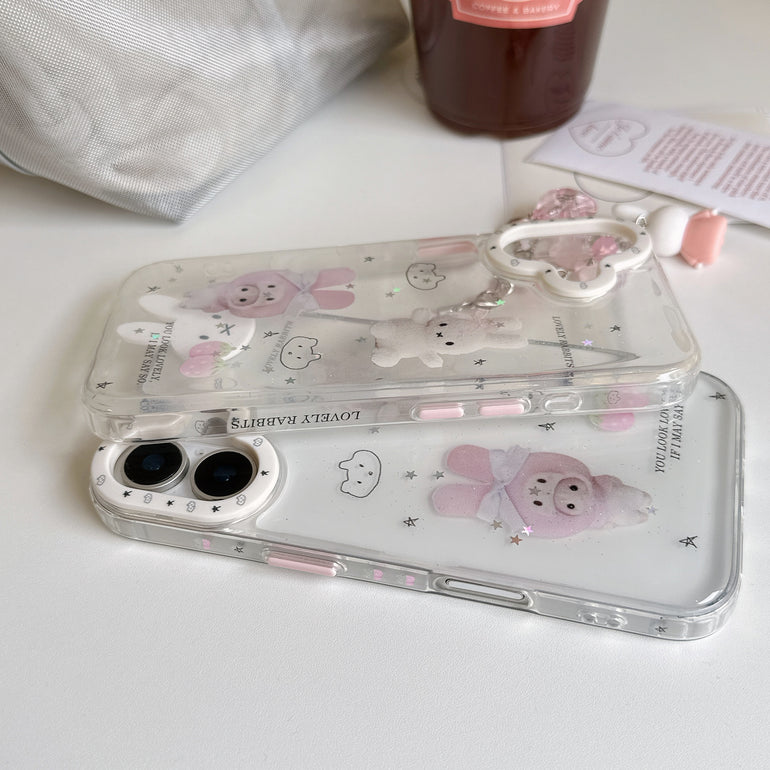 Lovely Rabbit Clear iPhone Case with 3D Bunny Charms & Star Glitter