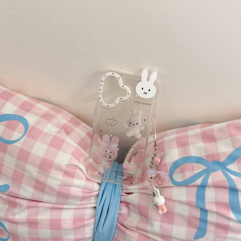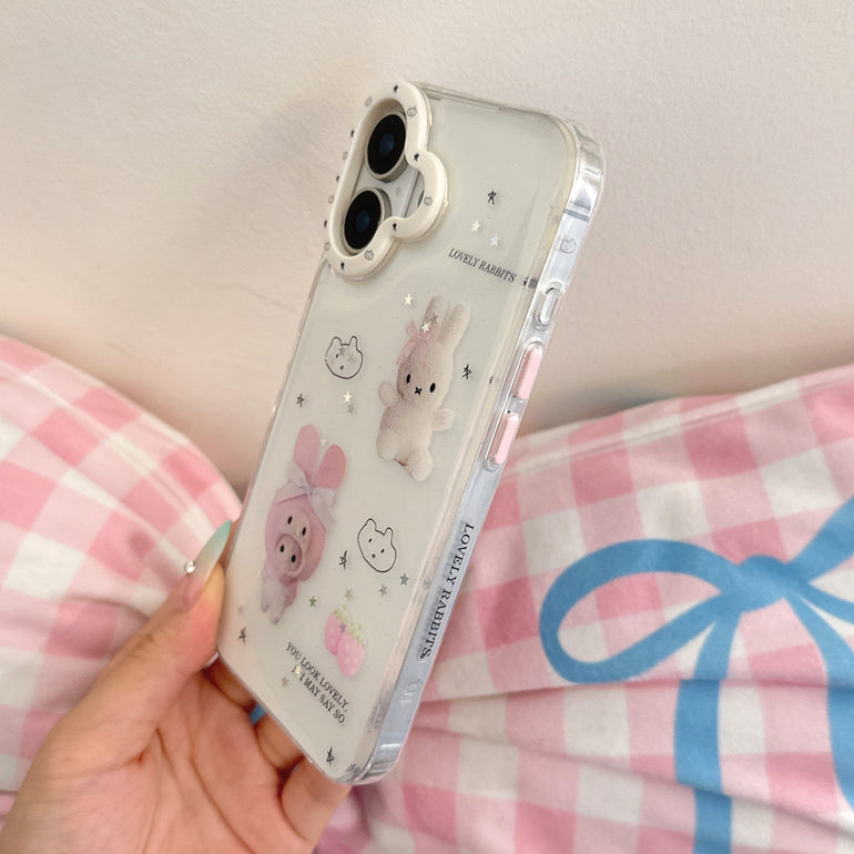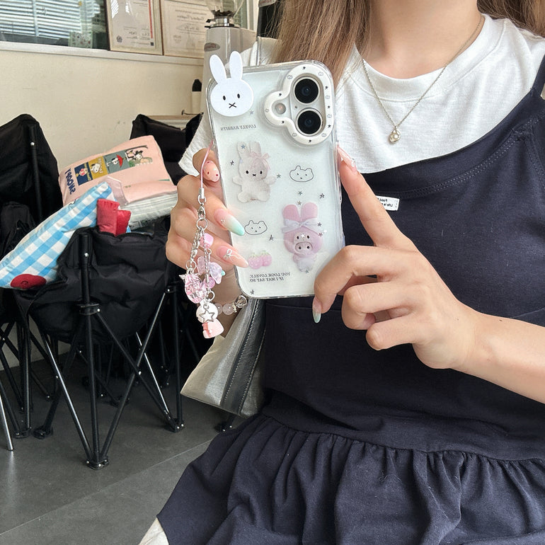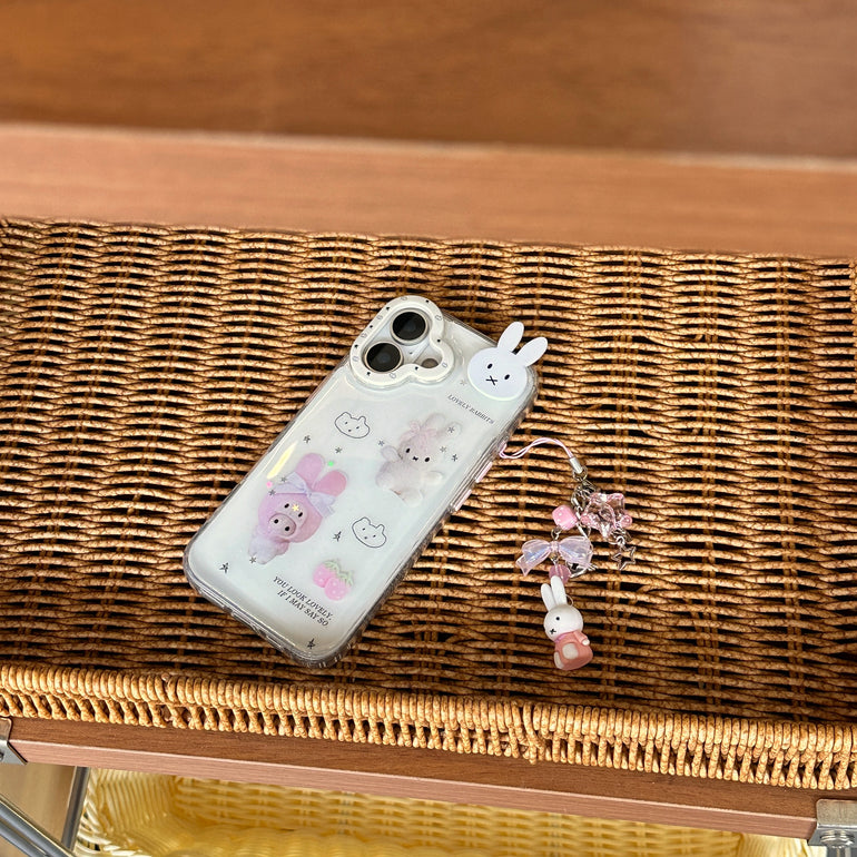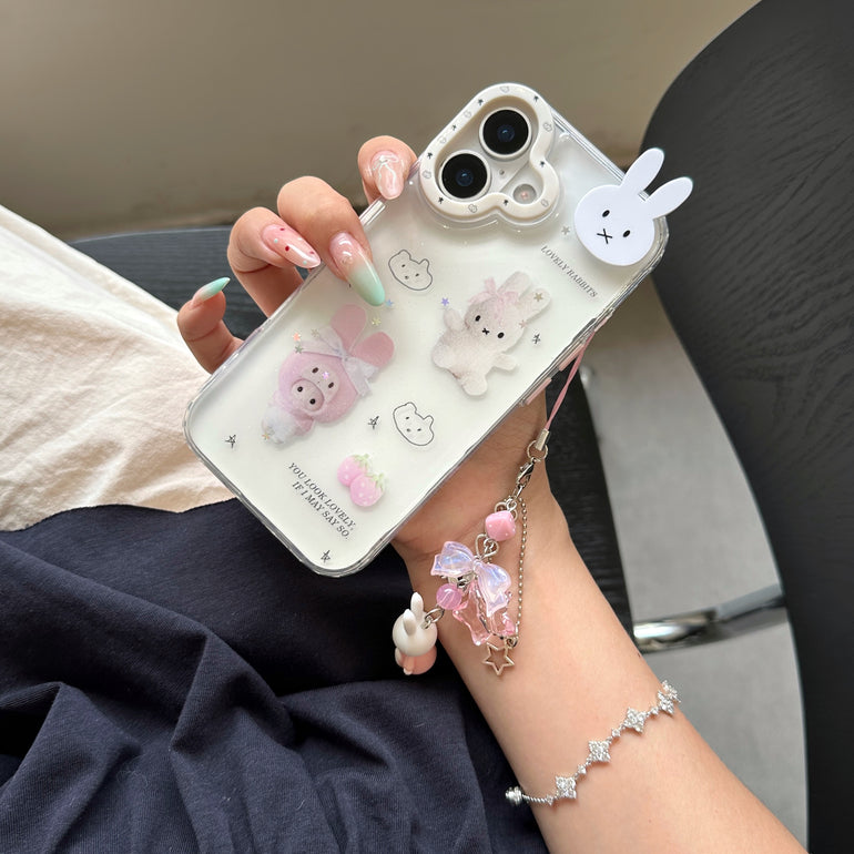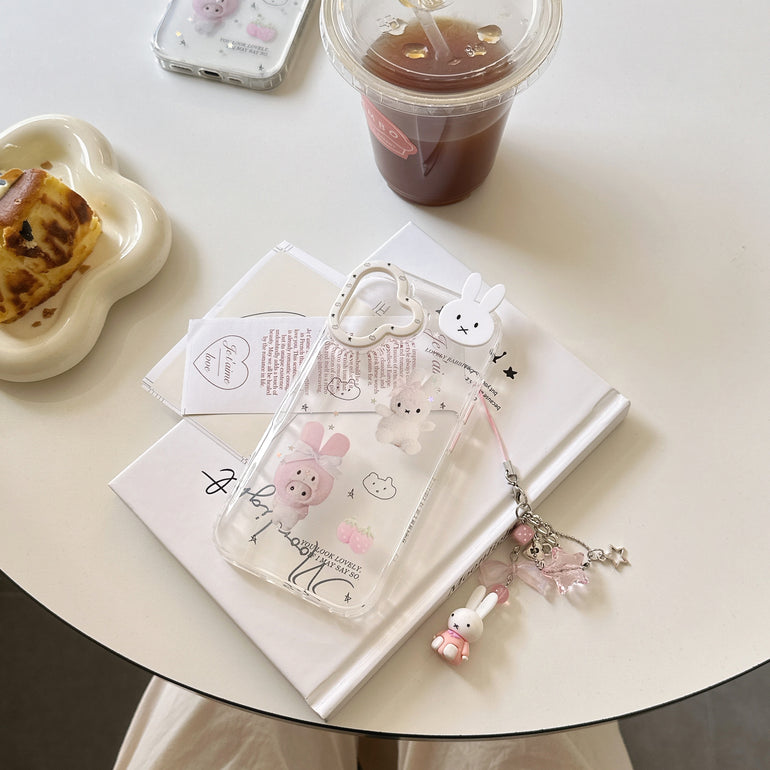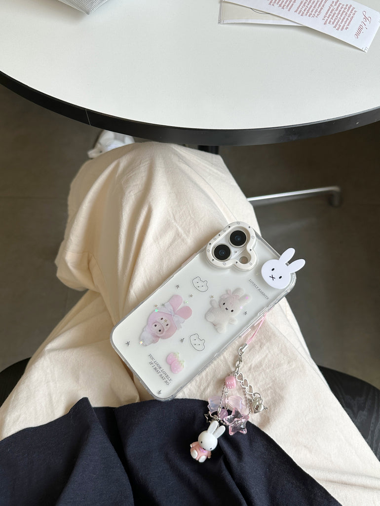 Lovely Rabbit Clear iPhone Case with 3D Bunny Charms & Star Glitter