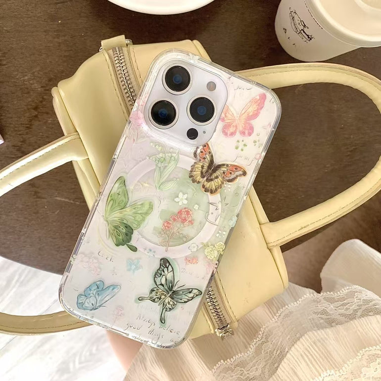Lucky Butterflies Magsafe Silicon Case For iPhone With Magsafe Holder