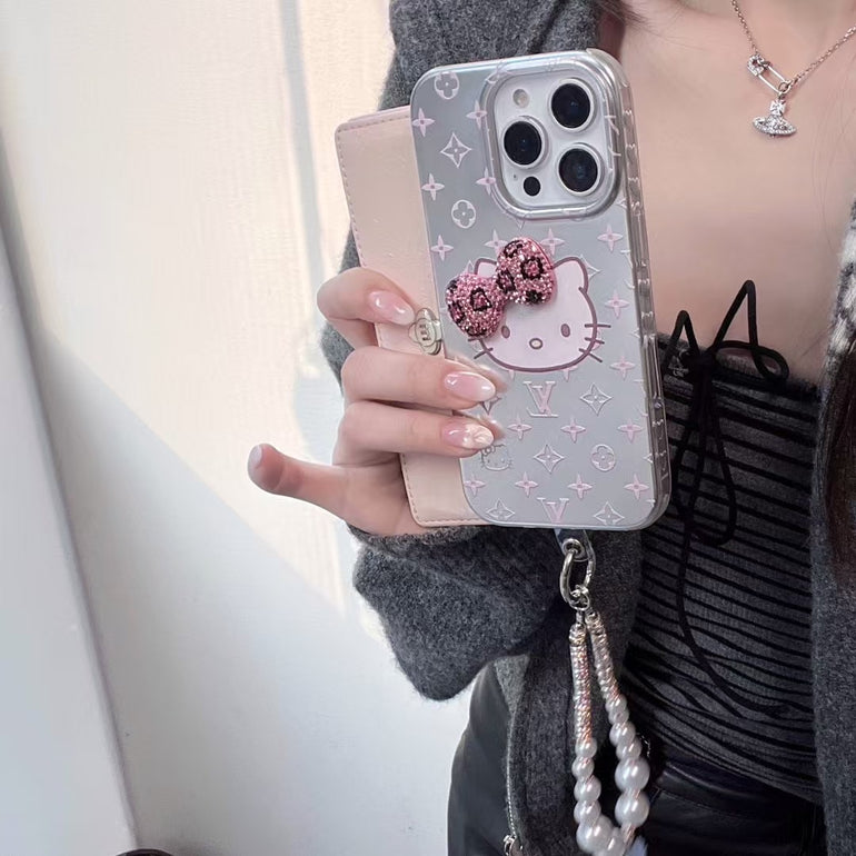 Luxury Branded Kitty Silicon Case With Hand Bracelet
