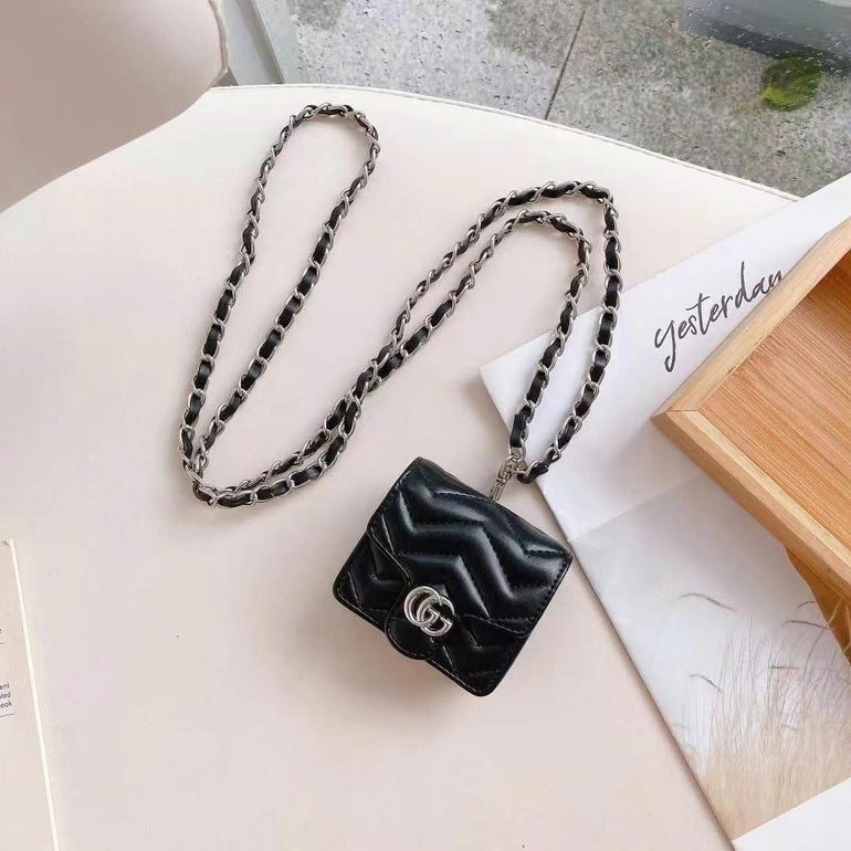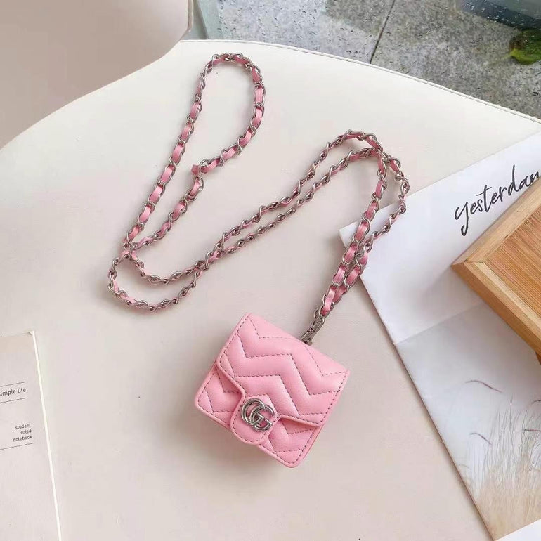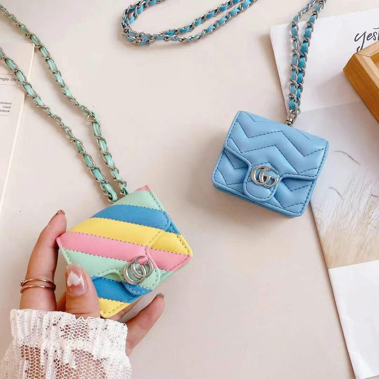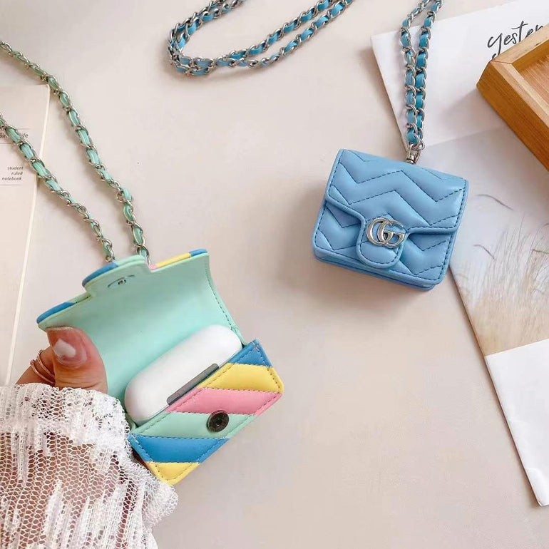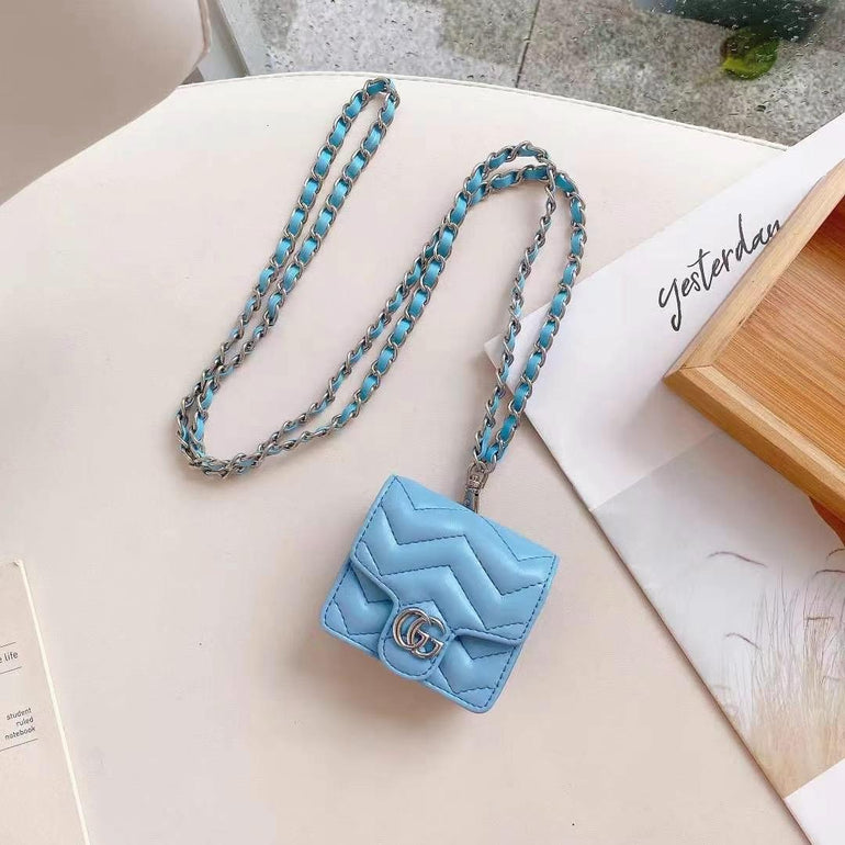 Luxury Branded Leather Case For Airpod With Sling Charm