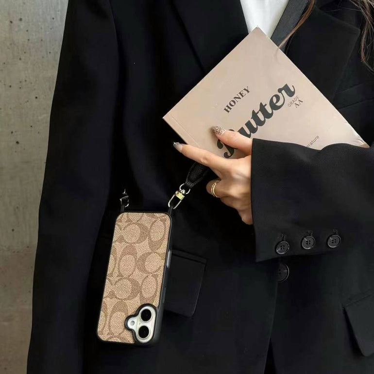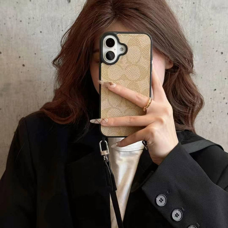 Luxury Branded Leather Case For iPhone With Sling