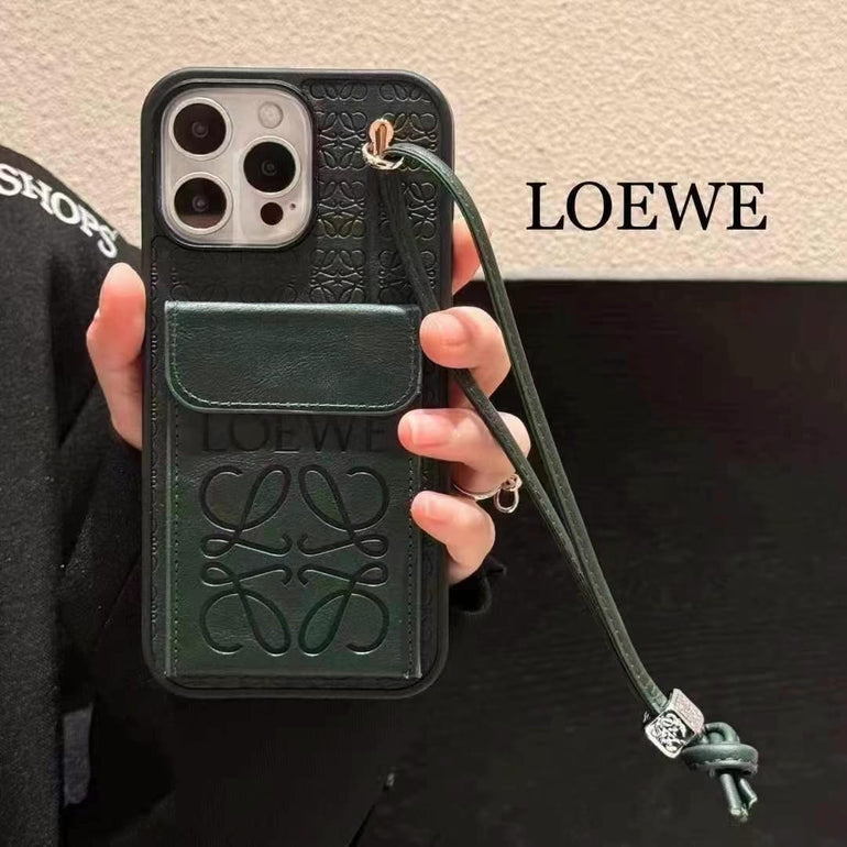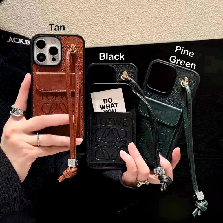 Luxury Branded Leather Wallet Case For iPhone With String Holder