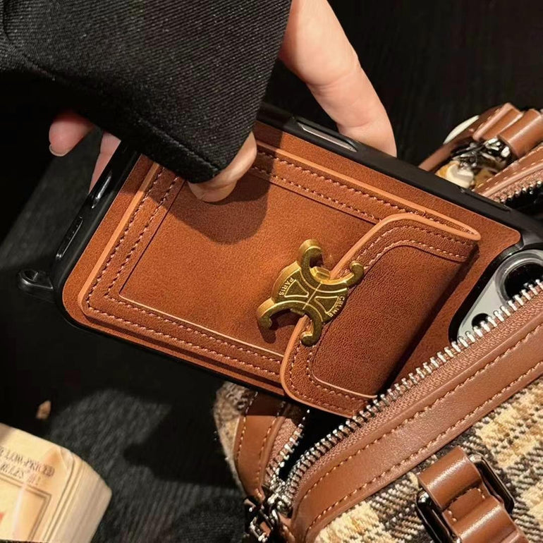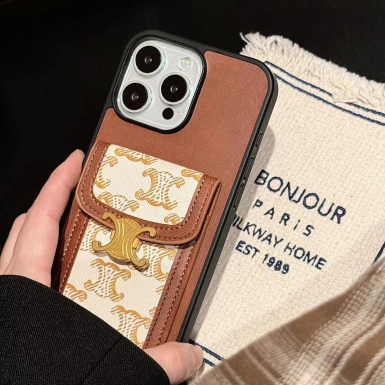 Luxury Branded Leather Wallet iPhone Case With Sling