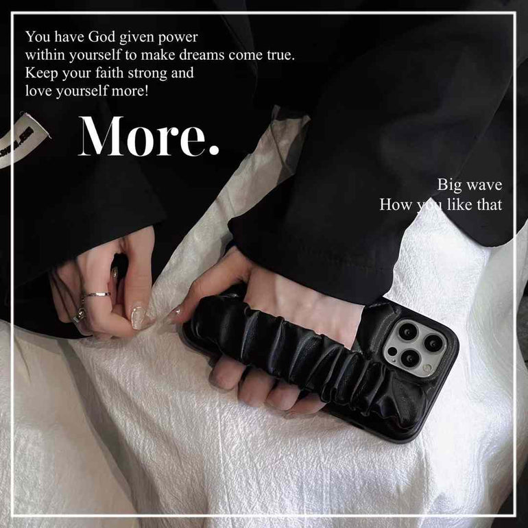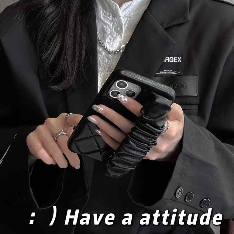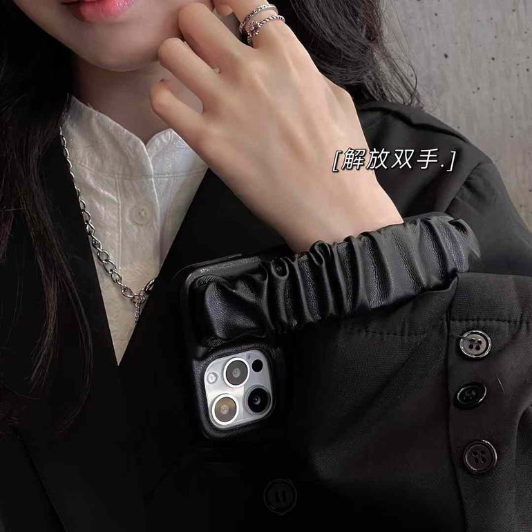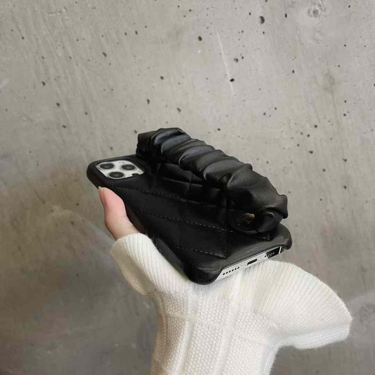 Quilted Leather Case for iPhone With Fluffy Holder ( Black )