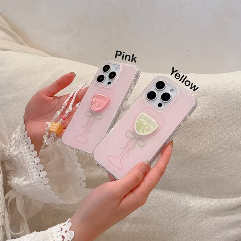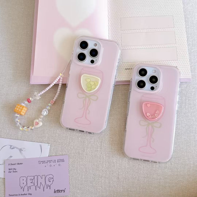 Pink Cocktail Designer Silicon Case For iPhone With Charm