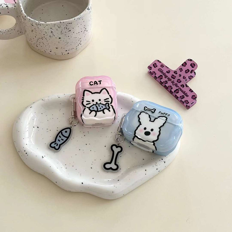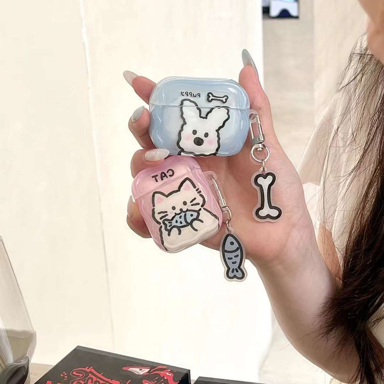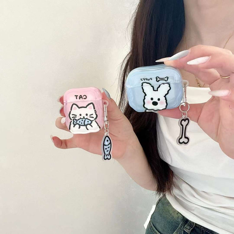 Puppy And Cat Silicon Designer Case for Airpod With Cute Charm