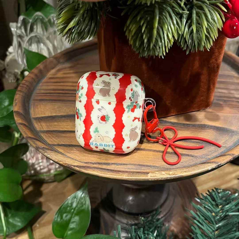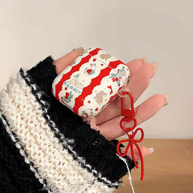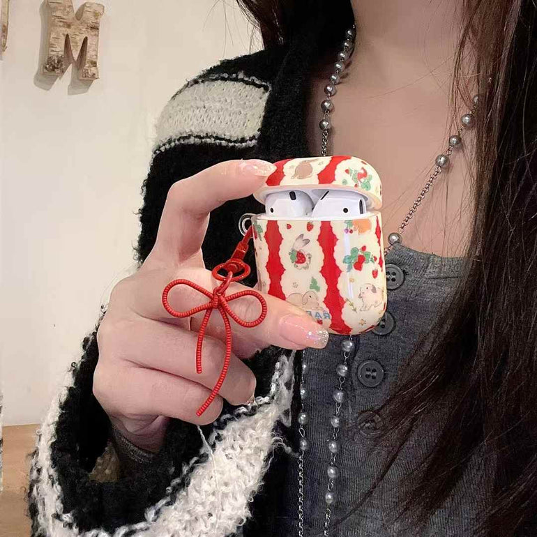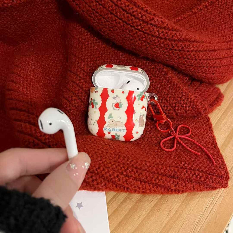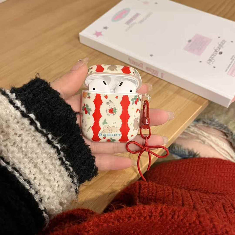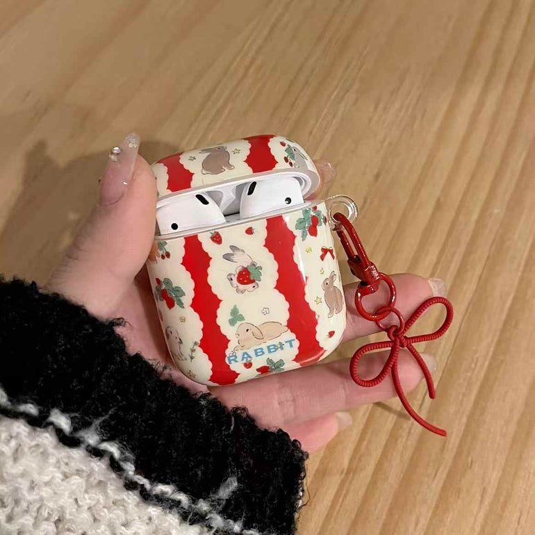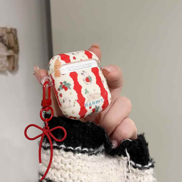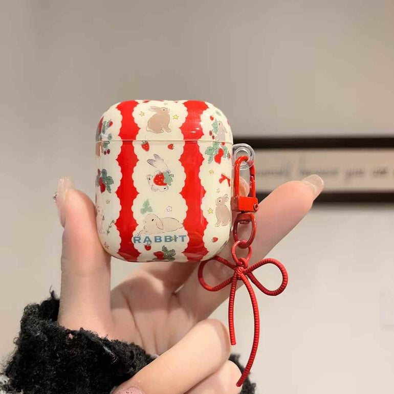 Rabbit Taste Strawberry Airpod Case With Bow Charm