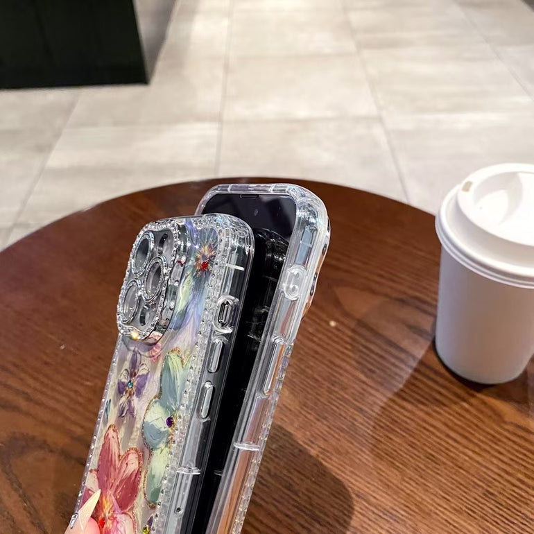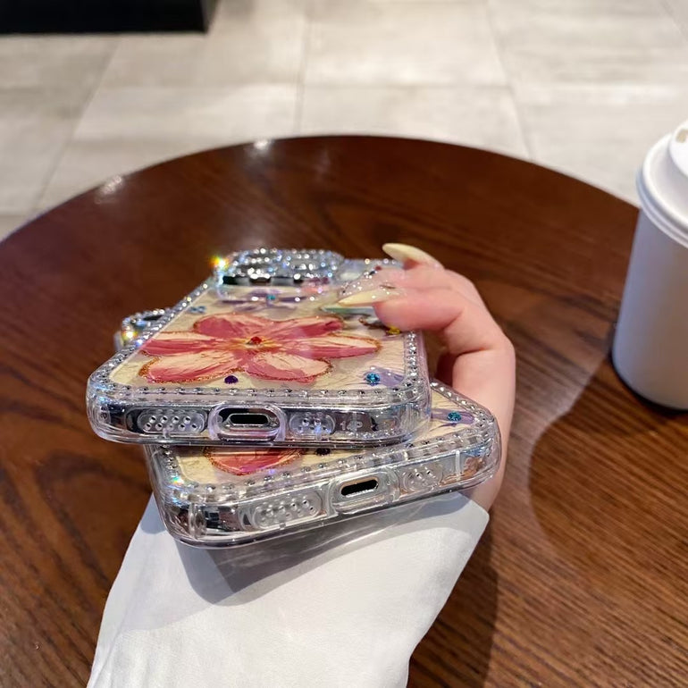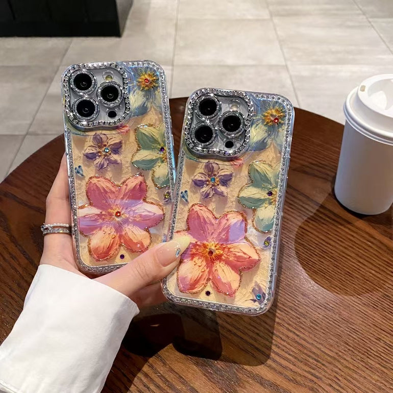 Rhinestone Daisy Designer Case For iPhone With Diamond Camera Lens