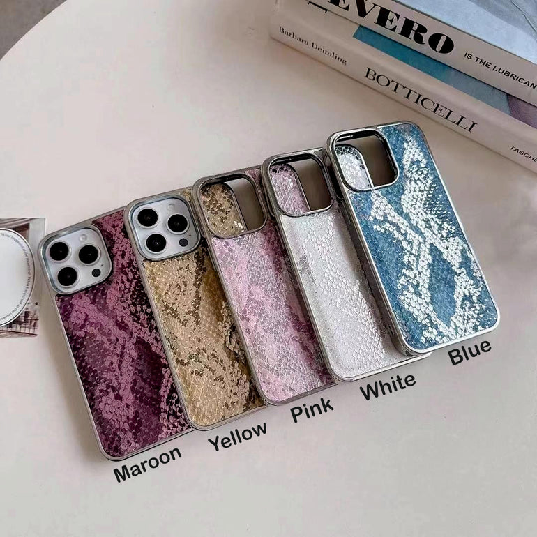 Snake Sking Embossed Leather For iPhone Case With Aluminium Bumper