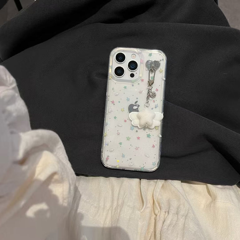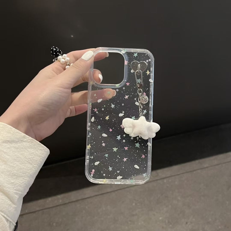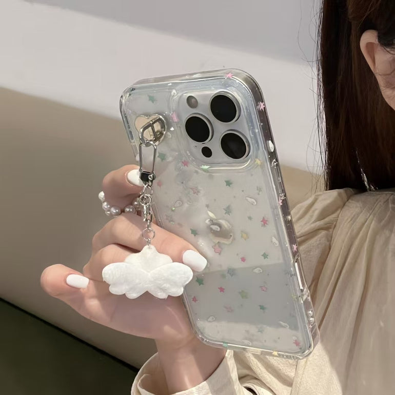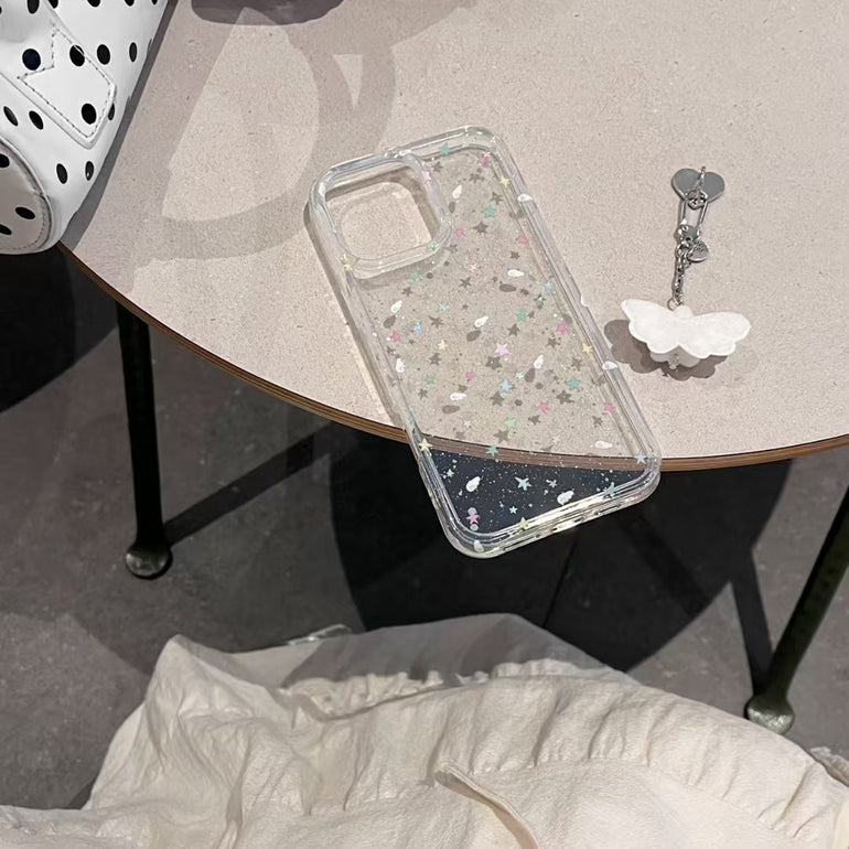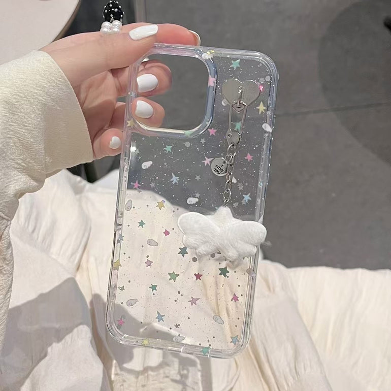 Star Pattern Silicon Case For iPhone With Star Butterfly Charm