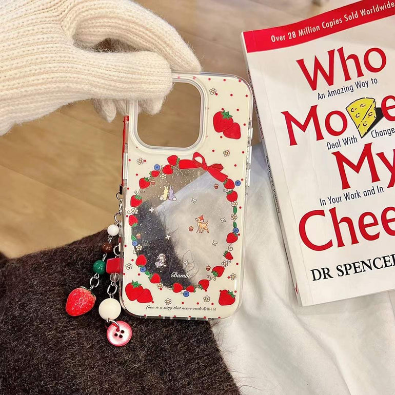 Strawberry With Animal Silicon Case For iPhone With Strawberry Charm