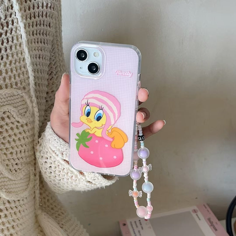 Tweety Duck Silicon Case For iPhone With Candy Charm
