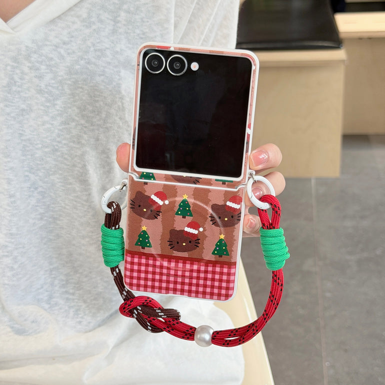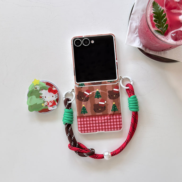 Hello Kitty Christmas Samsung Z Flip Case with Rope Strap & Magsafe Holder