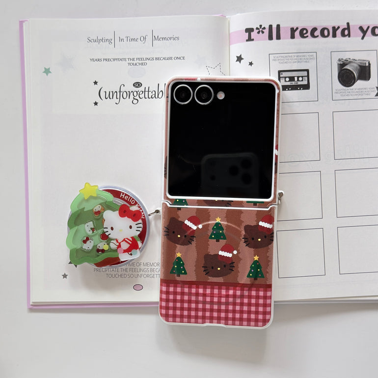 Celebrate the festive season in style with this adorable Hello Kitty Christmas Samsung Z Flip Case. Featuring a cute holiday-themed design with Hello Kitty and a Christmas tree, this case spreads joy while keeping your phone protected. It comes with a colorful rope strap for easy carrying and a Magsafe holder for a secure and comfortable grip.