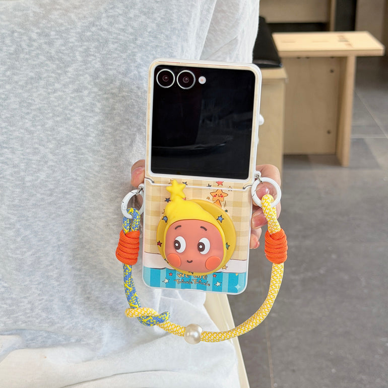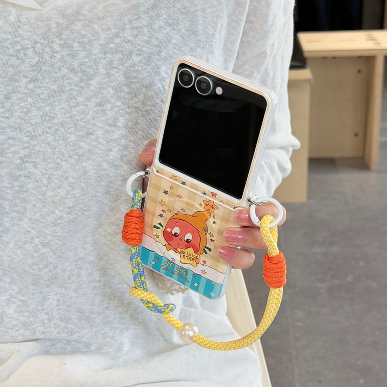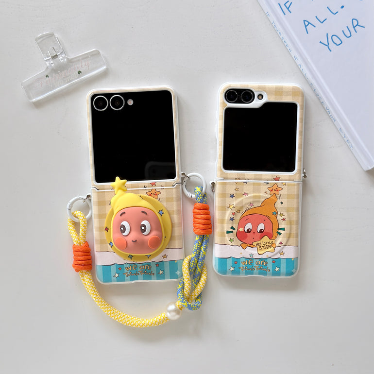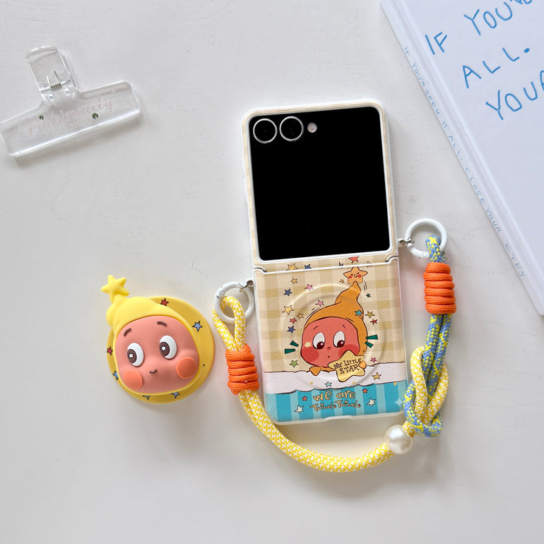 Star Cartoon Samsung Z Flip Case with Rope Strap & Magsafe Holder