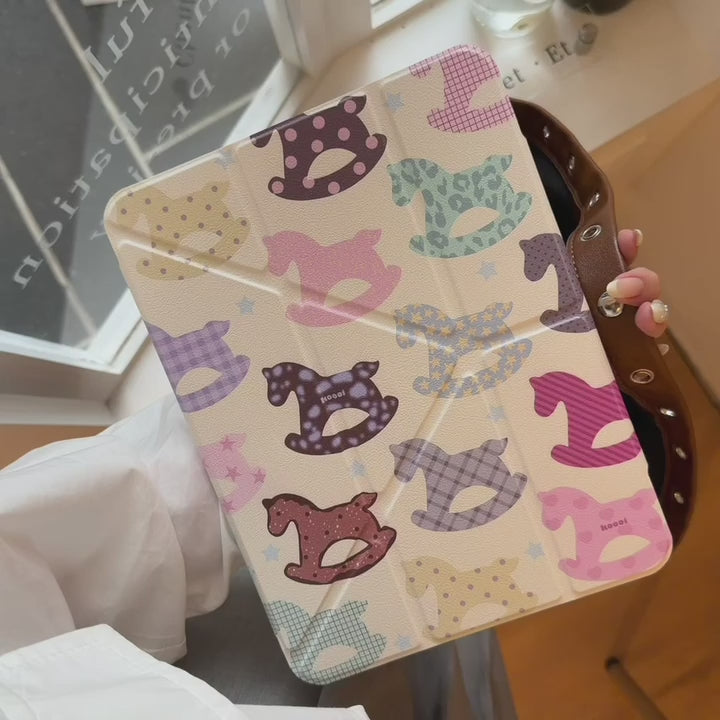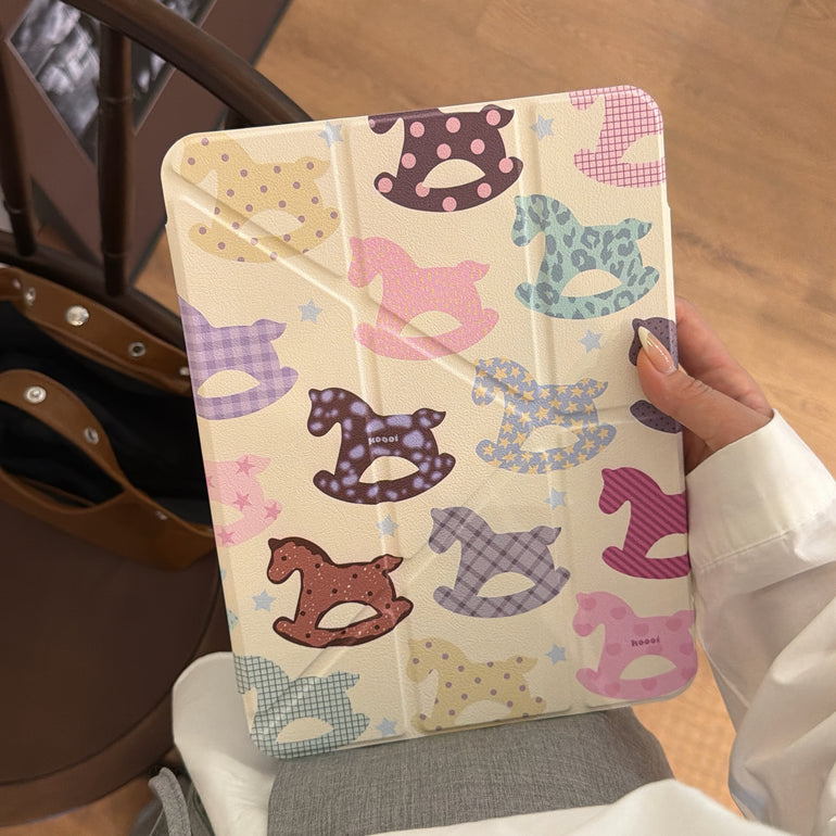 Pastel Horse Print Foldable iPad Case