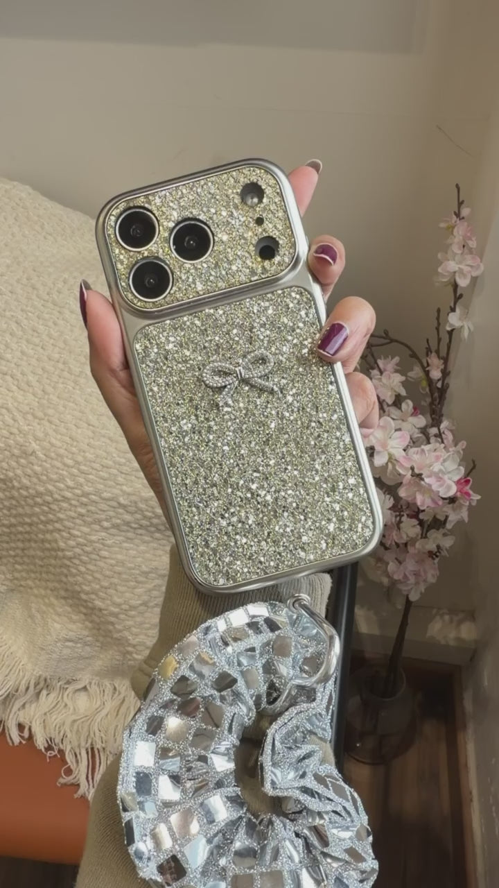 Add instant glam to your phone with the Luxury Glitter Bow iPhone Case with Scrunchie Charm ✨ Designed for those who love shine and elegance, this case features a dazzling glitter finish paired with a delicate bow for a premium aesthetic.
