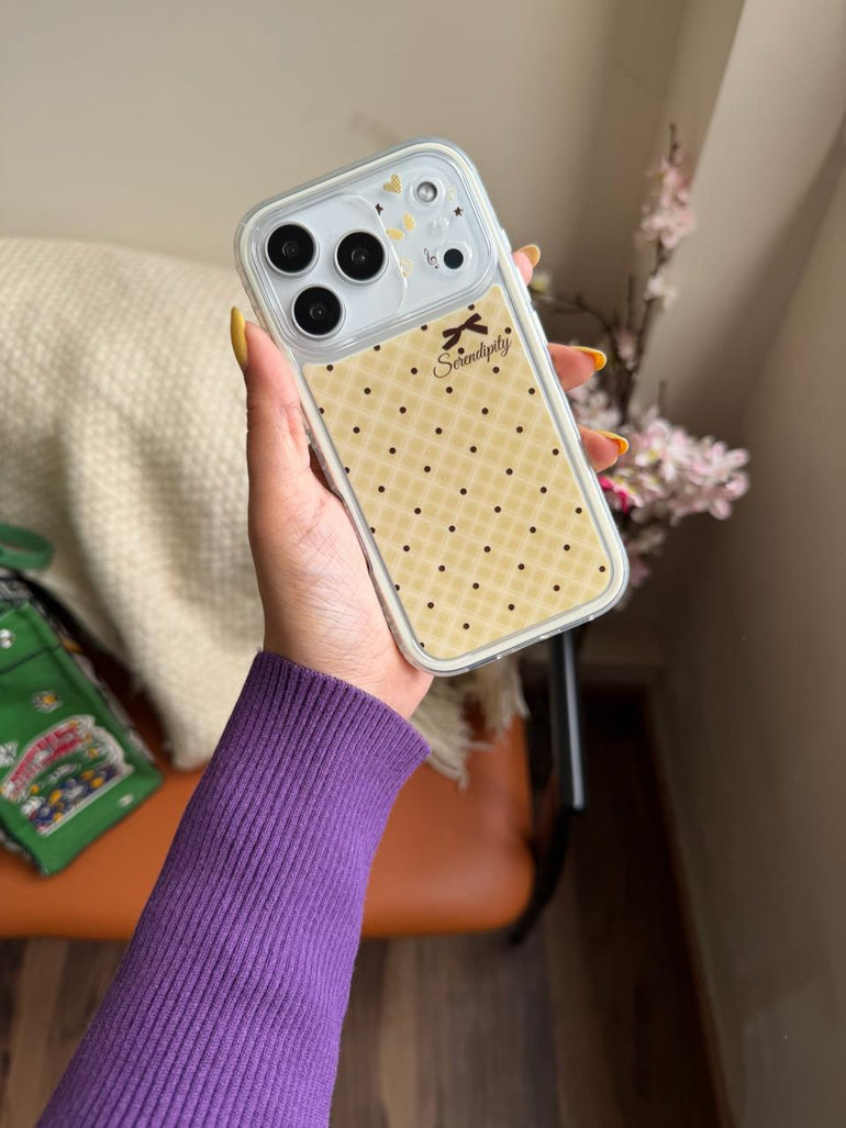 Give your phone a soft aesthetic upgrade with this Serendipity Aesthetic Checkered iPhone Case. Featuring a minimal beige checkered pattern with cute polka dots and subtle design accents, this case offers a clean, elegant, and stylish look while keeping your phone protected.
