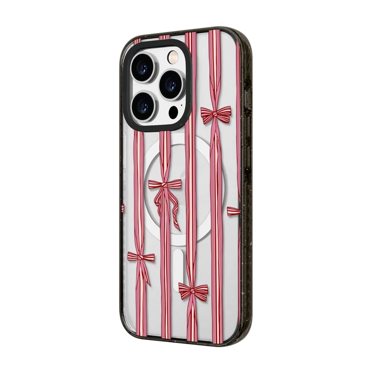 The bow and ribbon pattern is printed, keeping the case smooth, lightweight, and perfect for everyday use. The subtle MagSafe ring blends seamlessly into the design for added convenience.