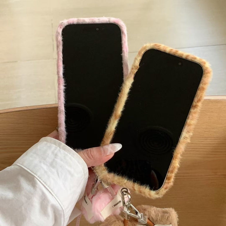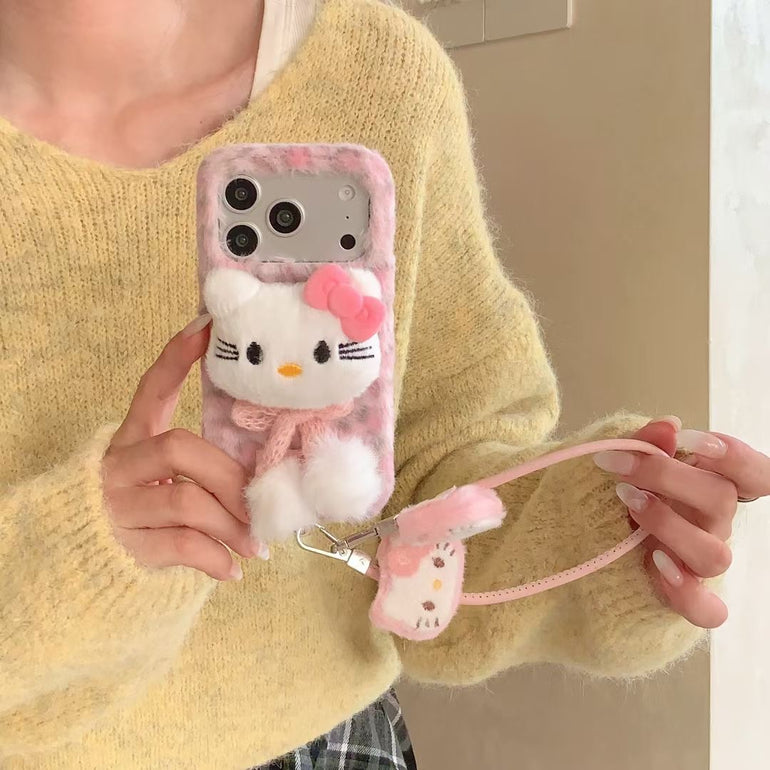 Add extra cuteness to your phone with this Cartoon Kitty Plush iPhone Cover, designed with a soft furry finish and an adorable kitty face. Comes with a matching plush wrist strap featuring mini kitty charms, making it easy and comfortable to carry while adding a cozy aesthetic touch.