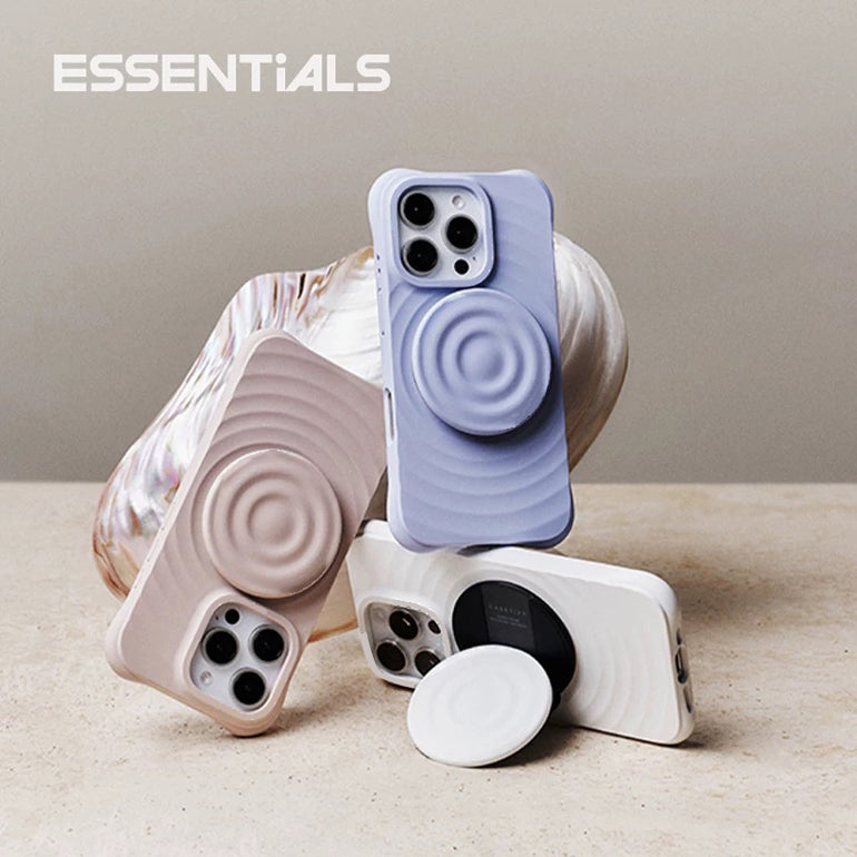 Essentials Ripple Case – Soft Matte iPhone Cover with Phone Holder – Minimal Aesthetic in Pastel Shades for iPhone
