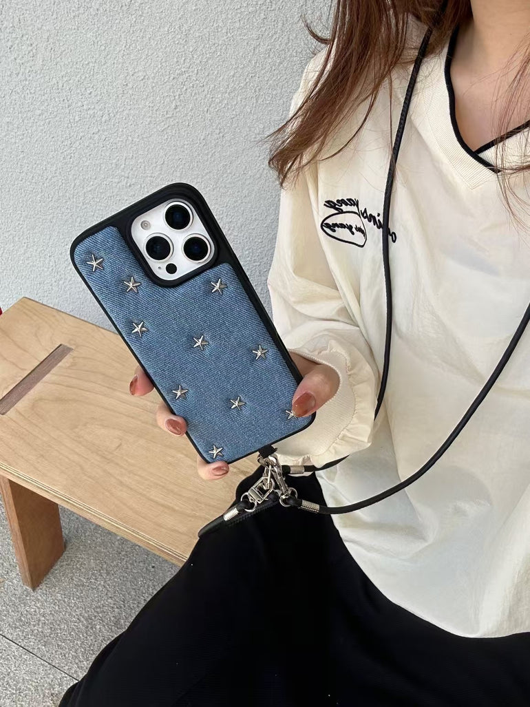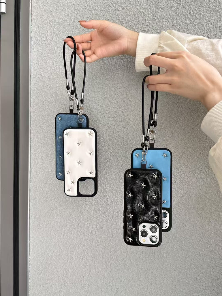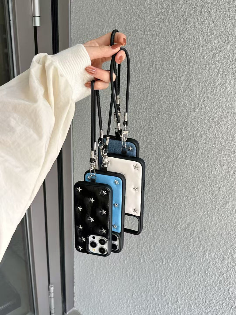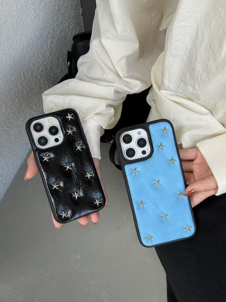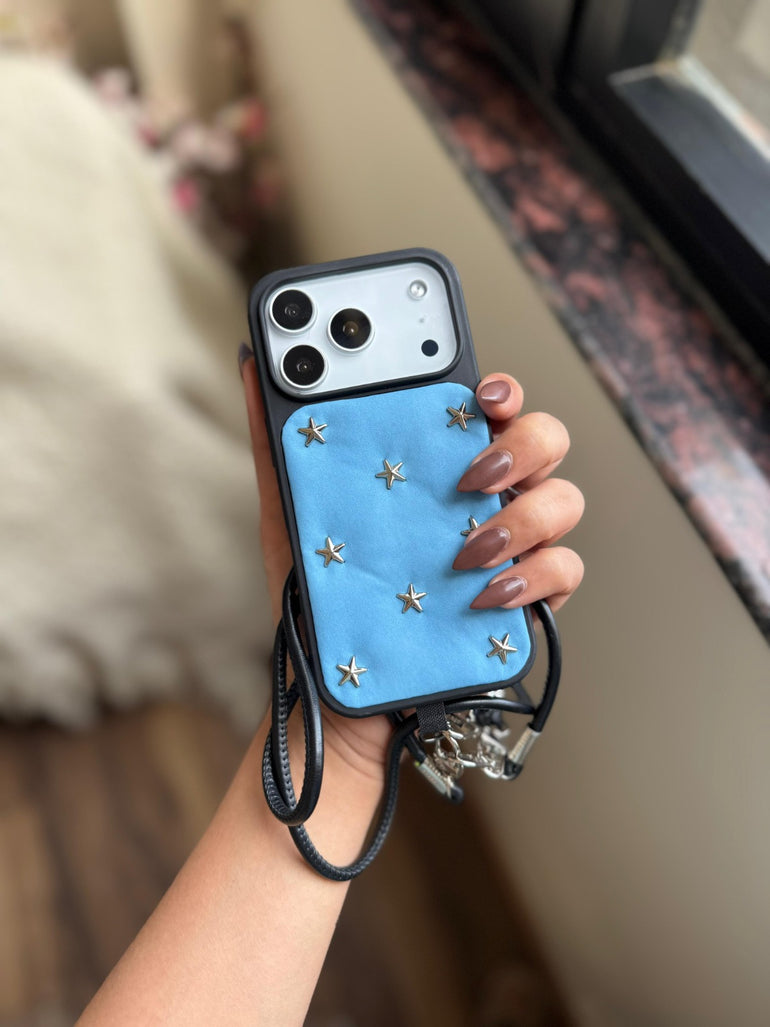 levate your style with this star studded leather iPhone case featuring a bold metallic star design and detachable charm strap for easy carrying. Perfectly blending luxury with protection, it’s the ideal case for those who love standout accessories.