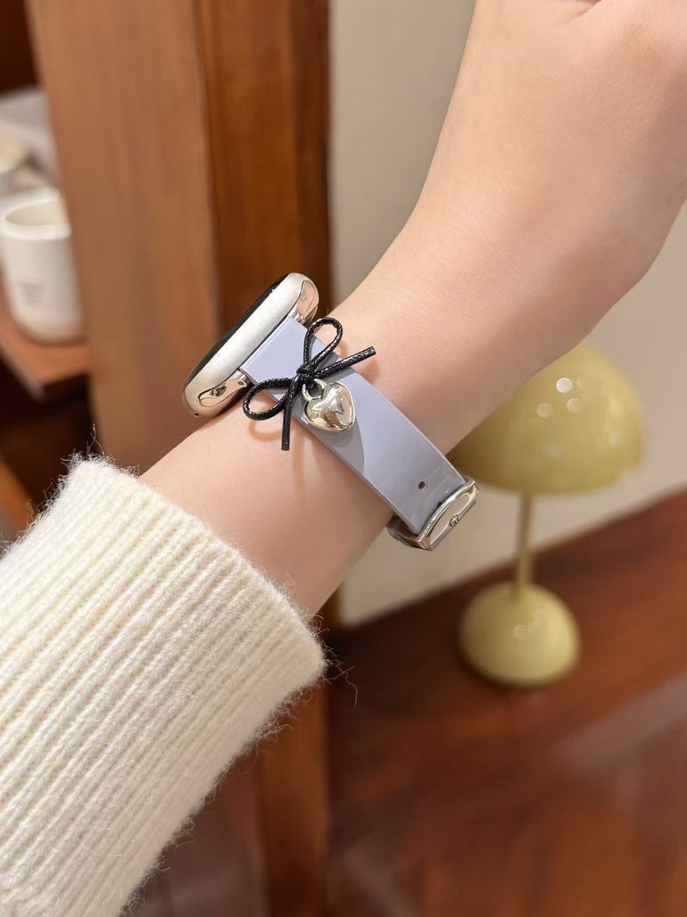 Minimal, elegant, and irresistibly cute — the Bow Heart Charm Apple Watch Strap adds a soft luxury touch to your everyday watch look. Crafted with a smooth glossy finish and finished with a delicate bow and heart charm, this strap blends simplicity with playful elegance.