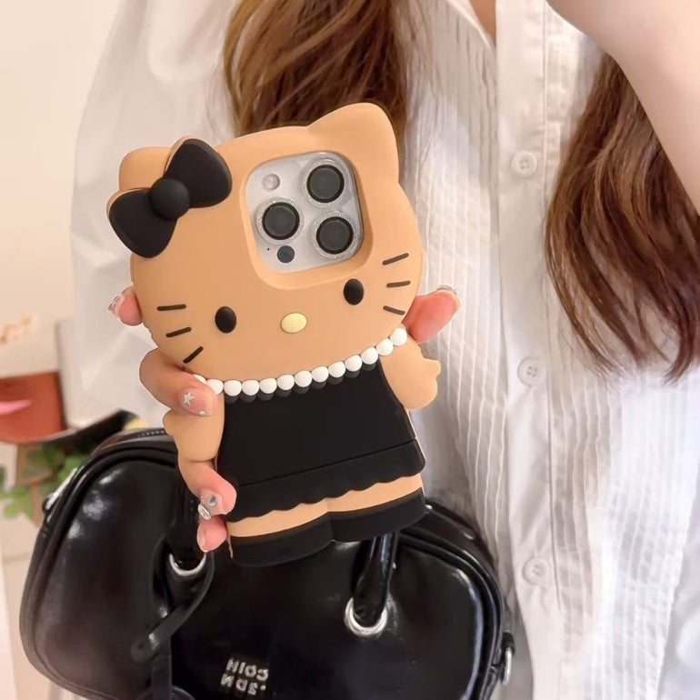 Make your phone look effortlessly stylish with this Brown Kitty iPhone Case, featuring an adorable 3D kitty dressed in a chic black outfit with a bow and pearl necklace detailing. The soft silicone build ensures your phone stays protected while maintaining a cute and fashionable look.