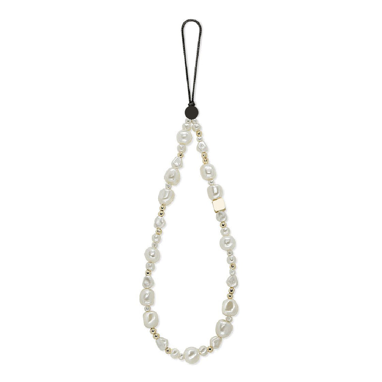 Classic Pearl Phone Charm – White Pearls with Gold Accents