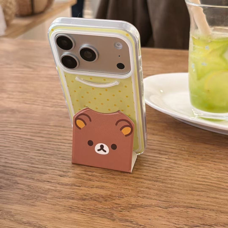 Make your phone extra cute and functional with this adorable Bear Stand iPhone Case. Featuring a charming cartoon bear design at the bottom, this case comes with a built-in foldable stand that allows you to keep your phone upright for watching videos, video calls, or browsing hands-free.
