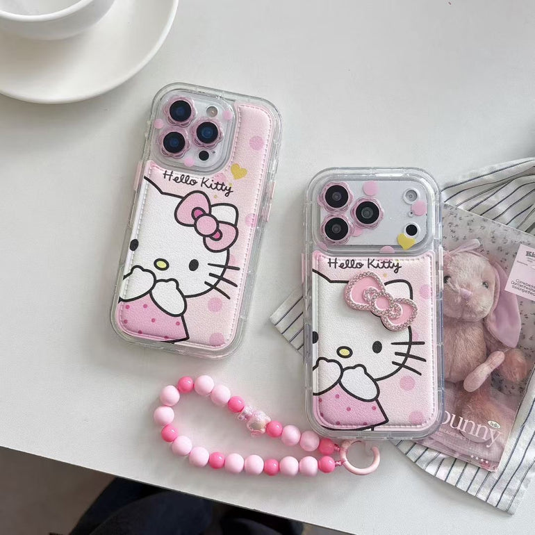 Add a cute and stylish touch to your phone with this adorable Hello Kitty iPhone case. Featuring a beautiful Hello Kitty design with a soft aesthetic finish and decorative bow detail, this case gives your phone a premium kawaii look. The included charm strap adds extra style and makes it easier to hold your phone securely.