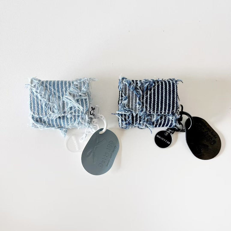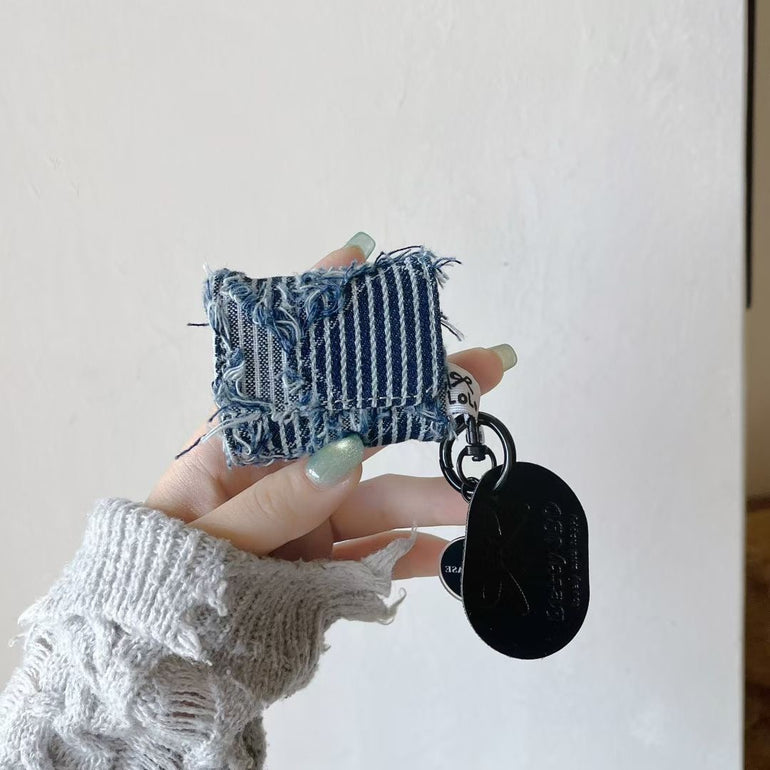 Denim AirPods Case with Keychain – Vintage Frayed Design